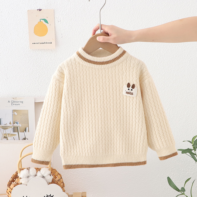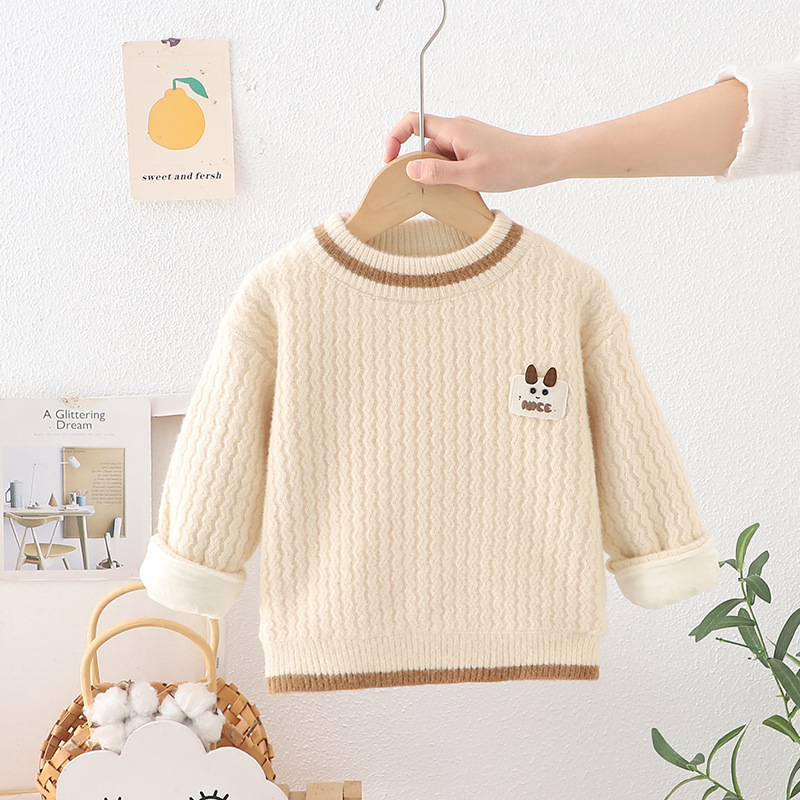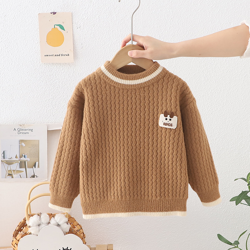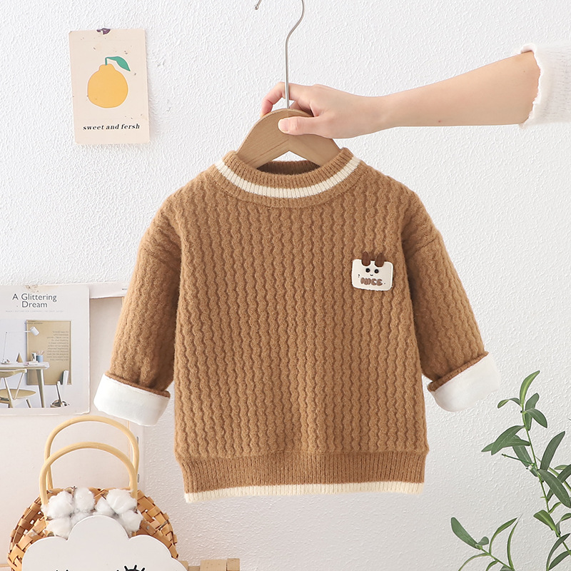 어린이 스웨터 2024 가을과 겨울 새로운 기모 두꺼운 소년 아기 중립 스웨터