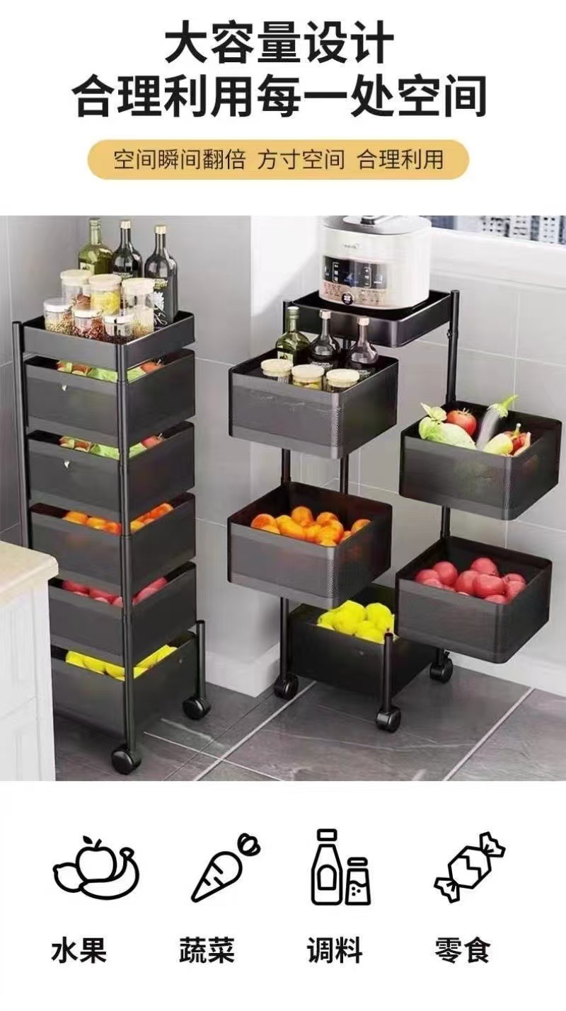 회전 가능한 주방 보관 랙 설치 무료 층 다층 야채 및 과일 랙 가정용 다기능 과일 간식스토어 가기