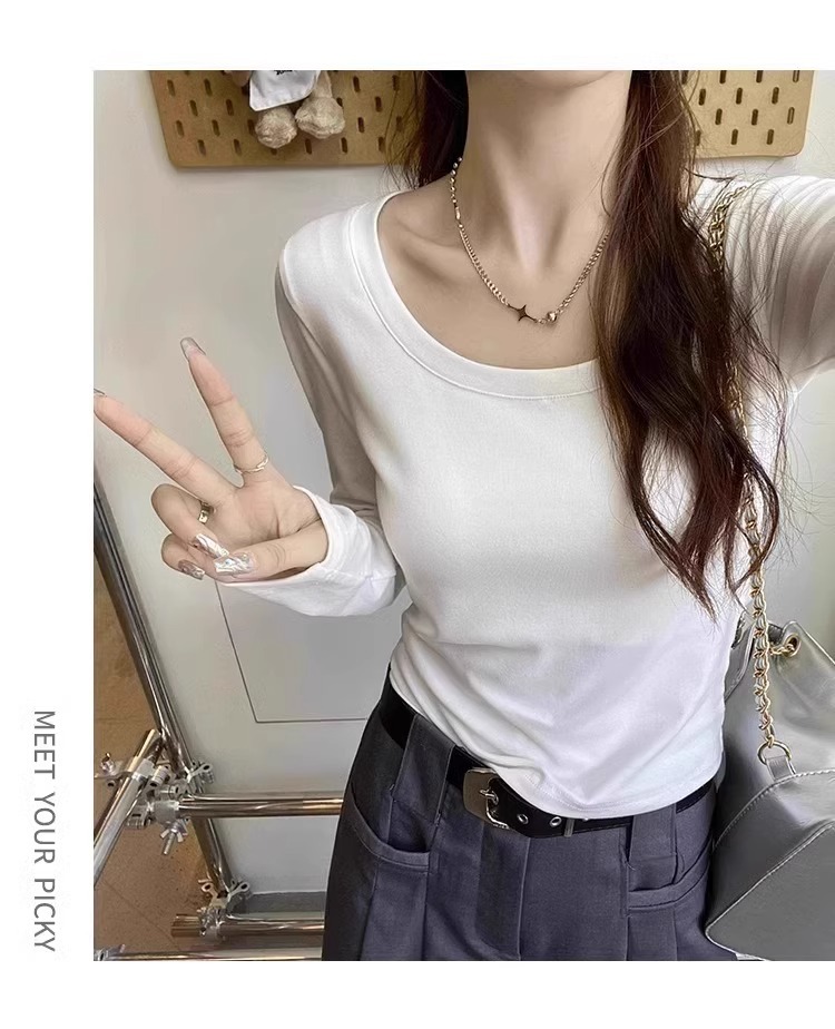 가을과 겨울 새로운 긴팔 벨벳 따뜻한 내베이스 셔츠 여성용 솔리드 컬러 U 칼라 슬림핏 슬리밍 우아한 올 매치 탑스토어 가기