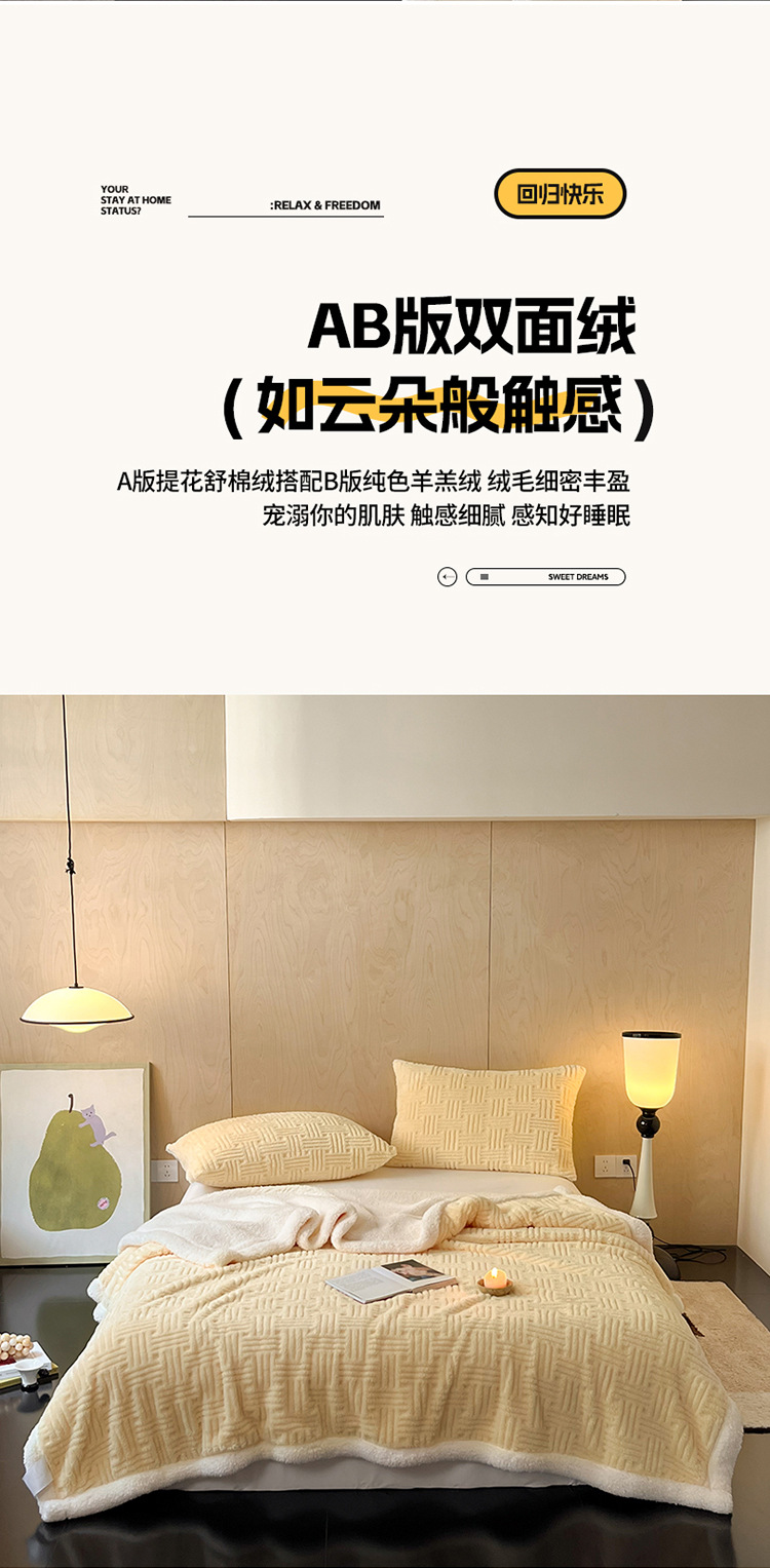 多功能盖毯,提花舒棉绒拼羊羔绒双层毛毯,速暖小太阳。