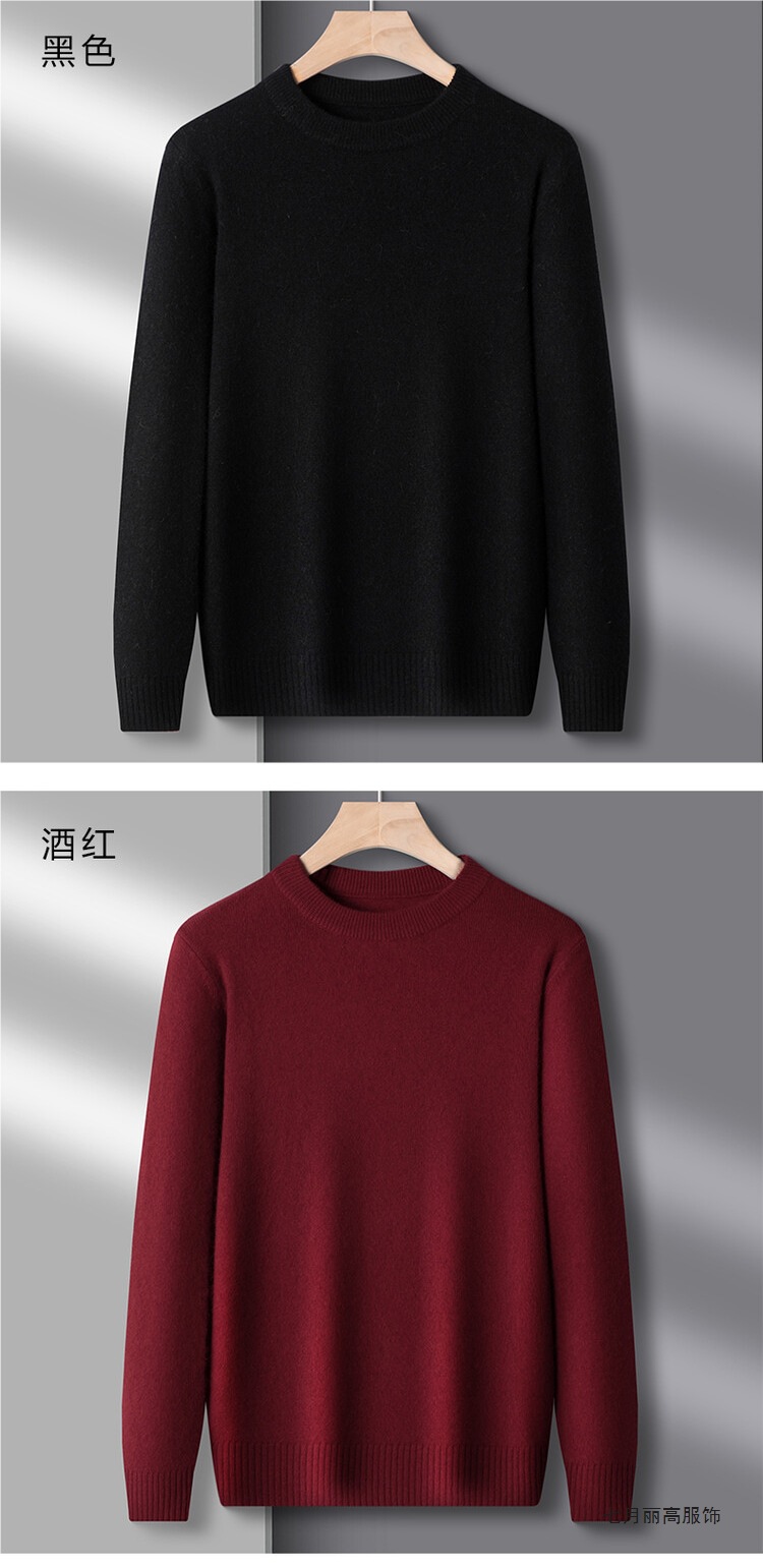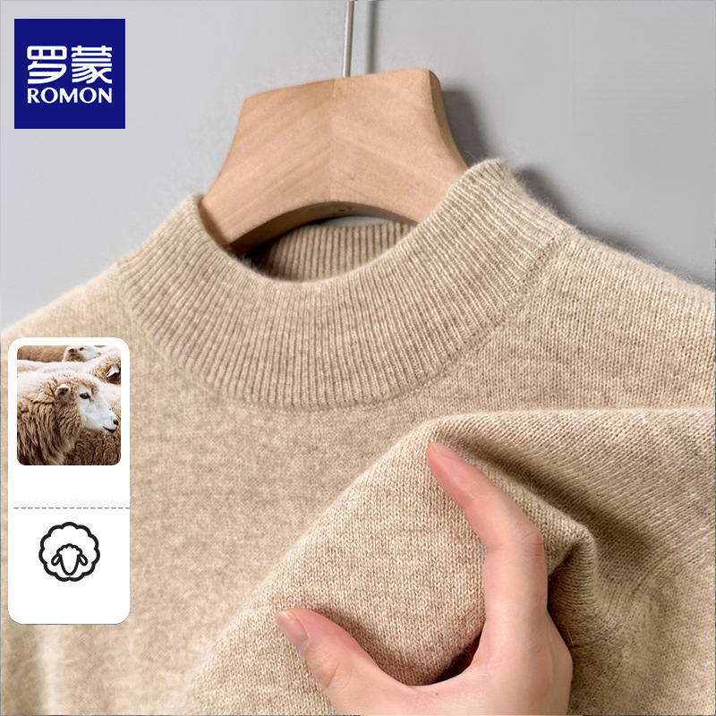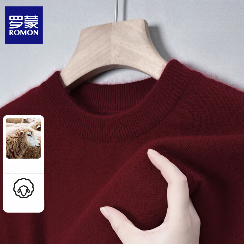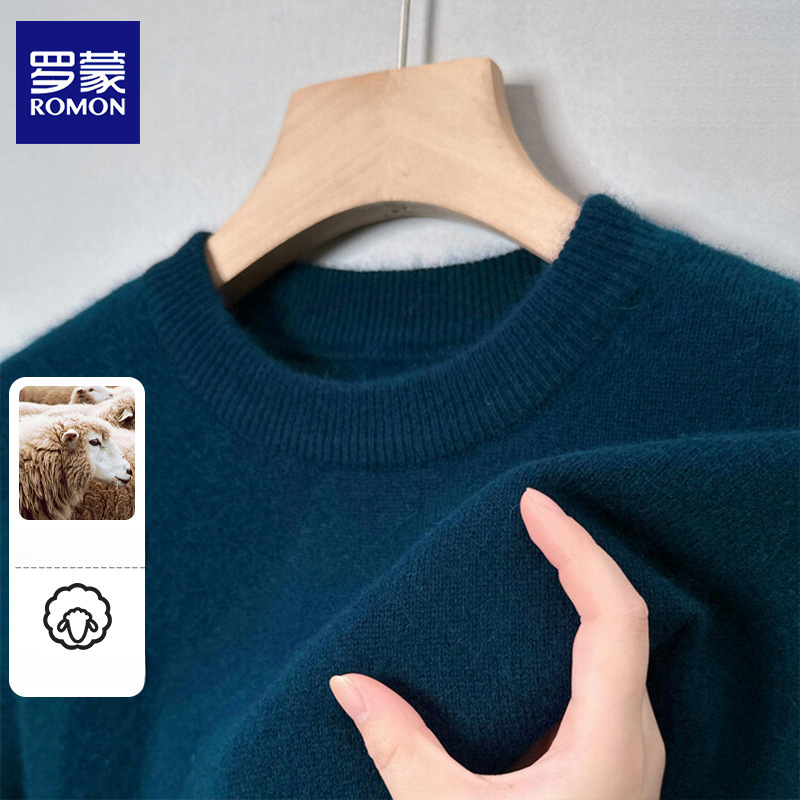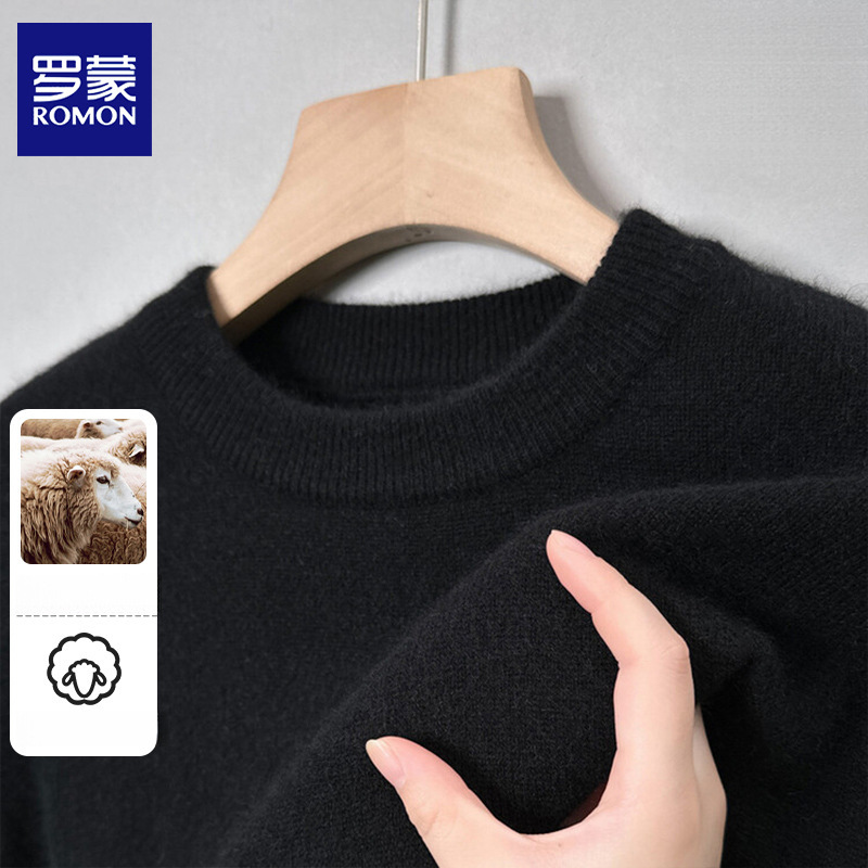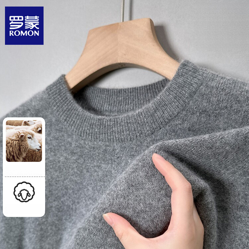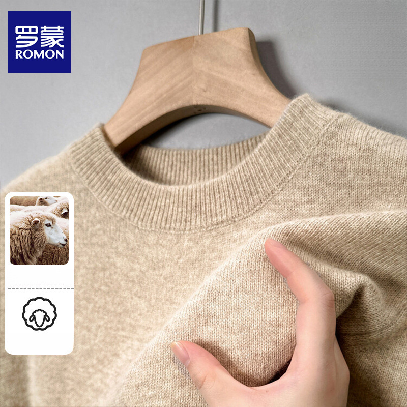 로몬 2025 겨울 울 스웨터 남성용 봄/가을 울 니트 라운드넥 풀오버 따뜻한 스웨터 양룬리고