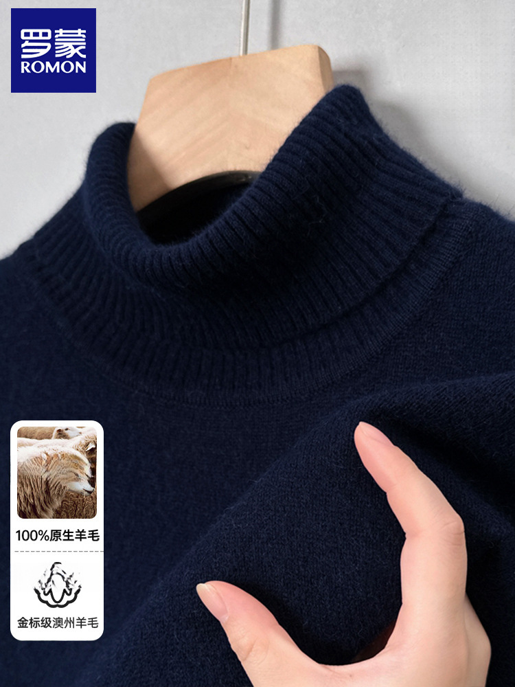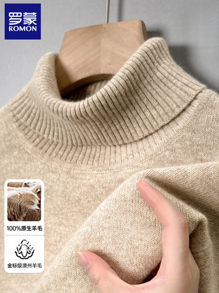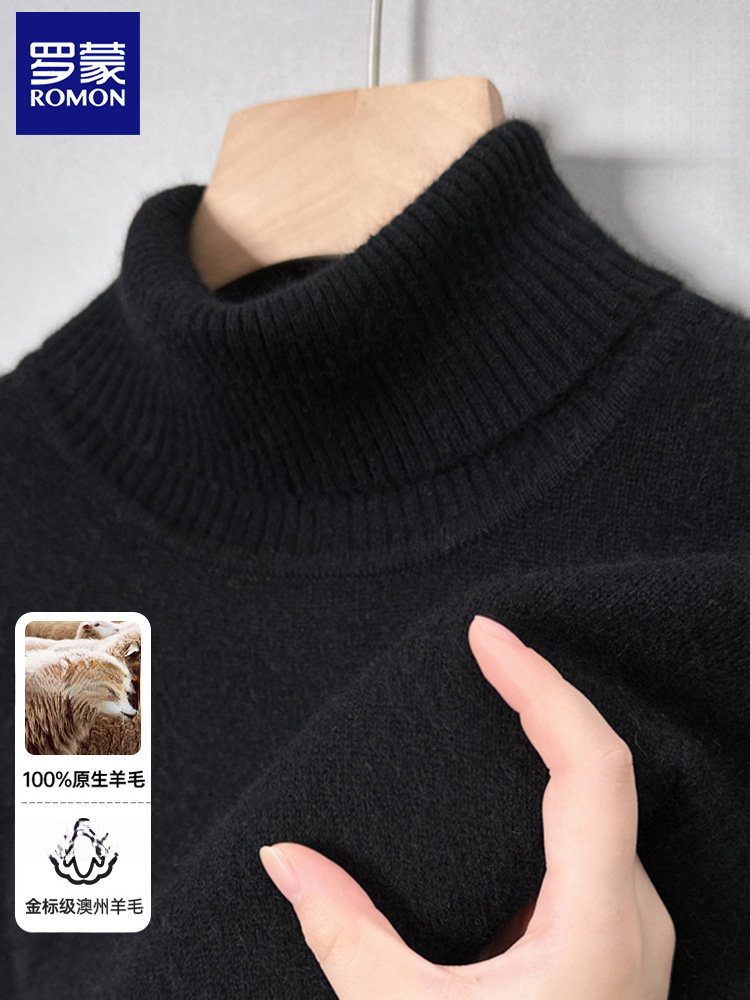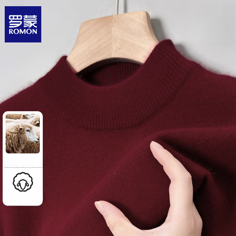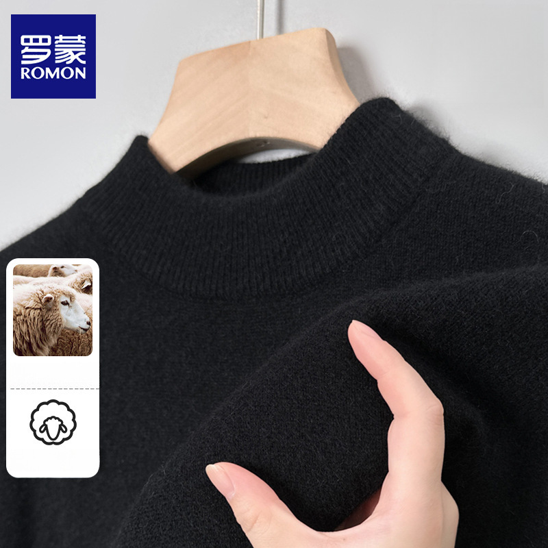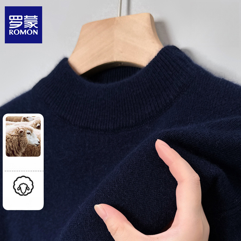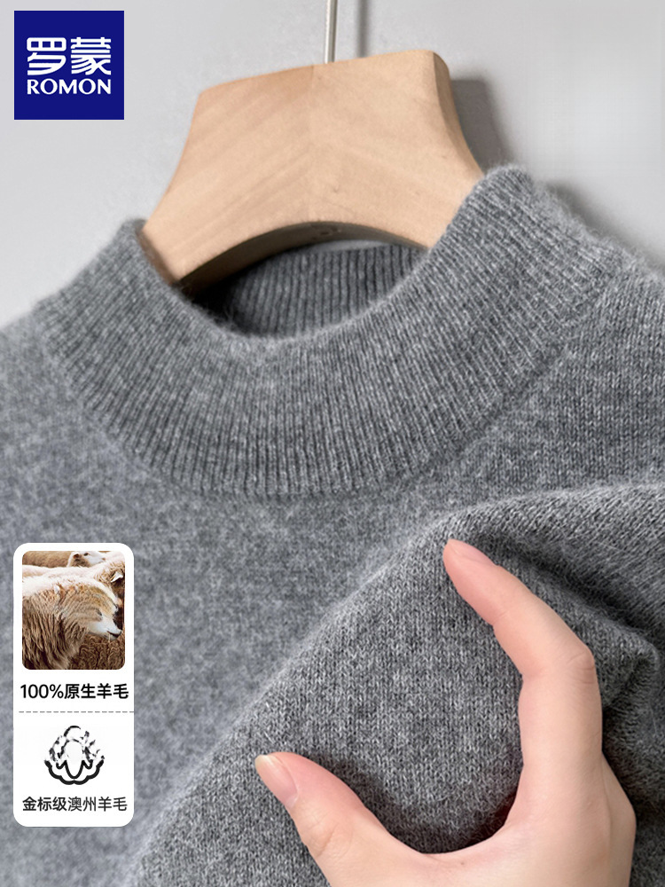 로몬 2025 겨울 울 스웨터 남성용 봄/가을 울 니트 라운드넥 풀오버 따뜻한 스웨터 양룬리고