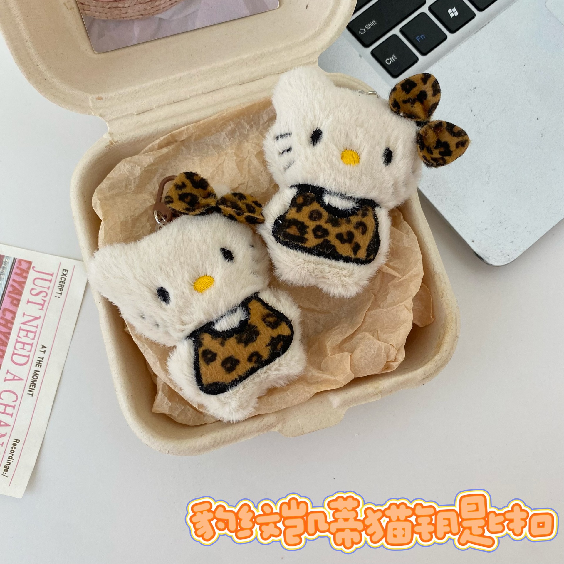 만화 레오파드 만화 KT 고양이 봉제 키 체인 키티 고양이 펜던트 백 키 체인 걸이 헤드웨어 액세서리