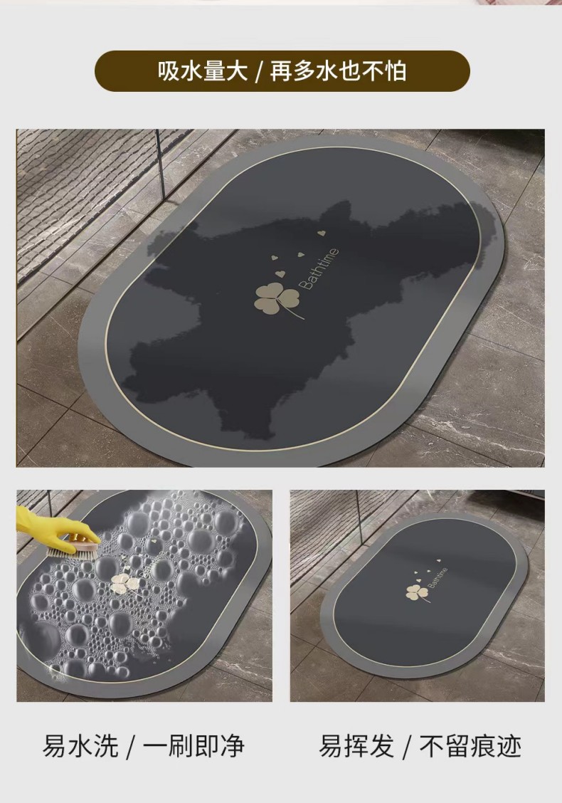 Diatom 진흙 바닥 매트 욕실 문 흡수성 미끄럼 방지 빠른 건조 발 매트 욕실 욕조 미끄럼 방지 고무 부드러운 발 매트스토어 가기