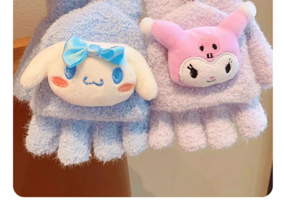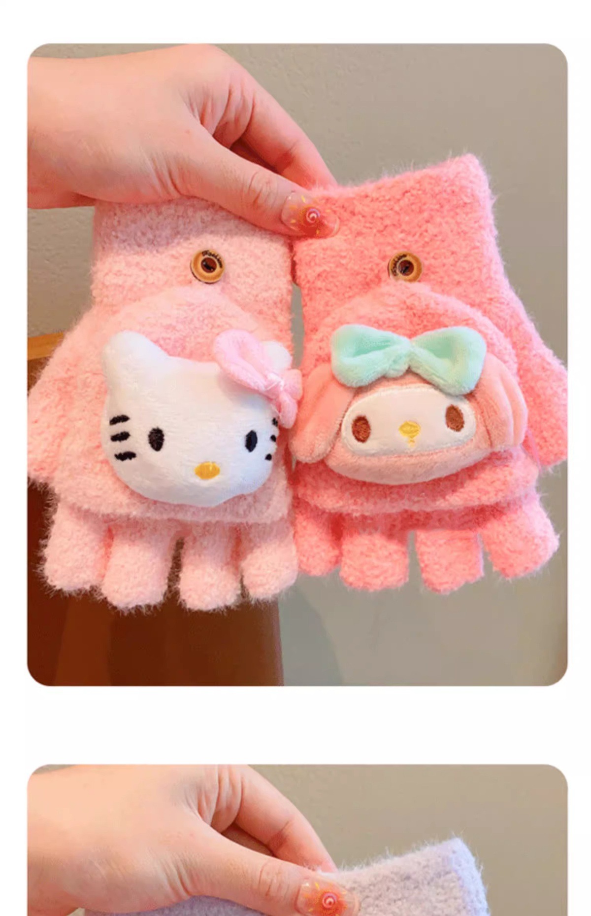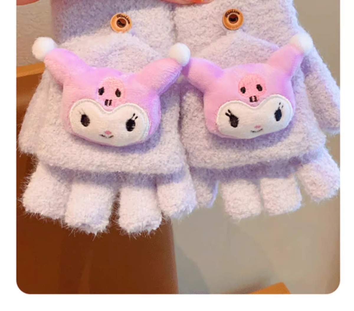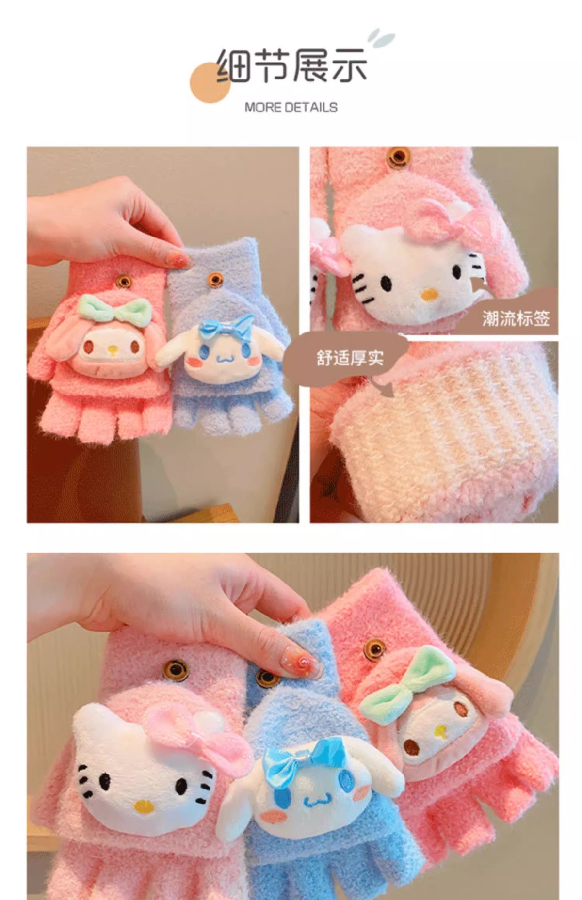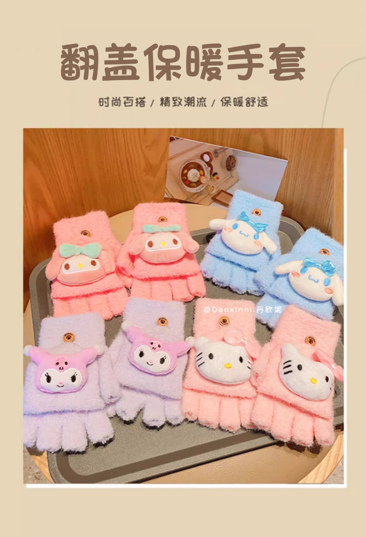 겨울 어린이 장갑 산리오 소년 소녀 다섯 손가락 장갑 방풍 및 따뜻한 초등학생 쓰기 및 손가락 방한