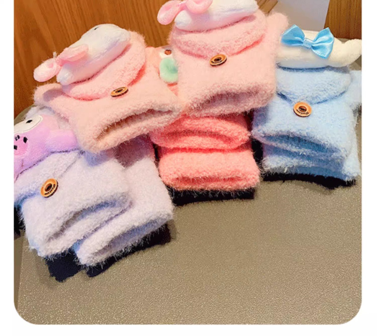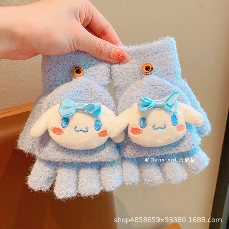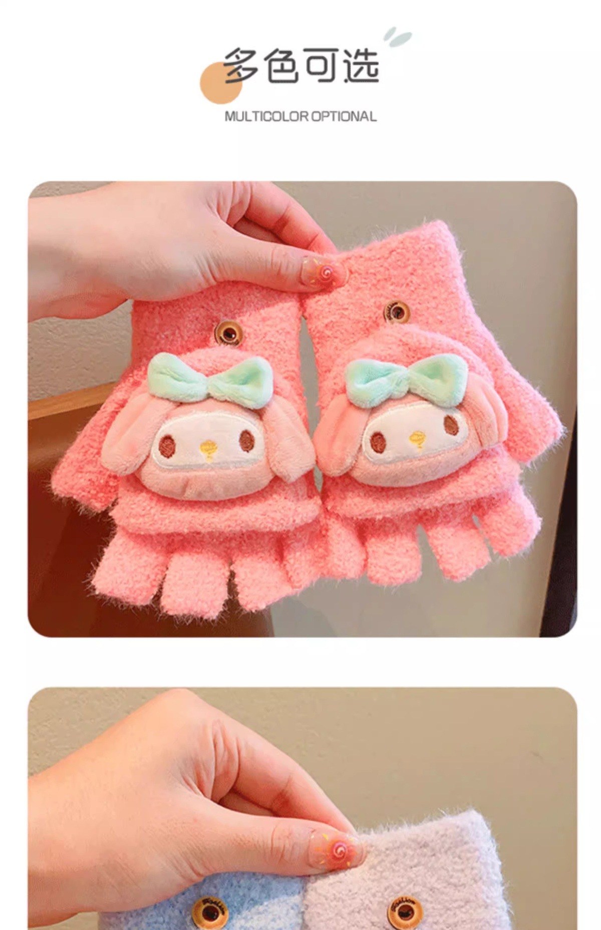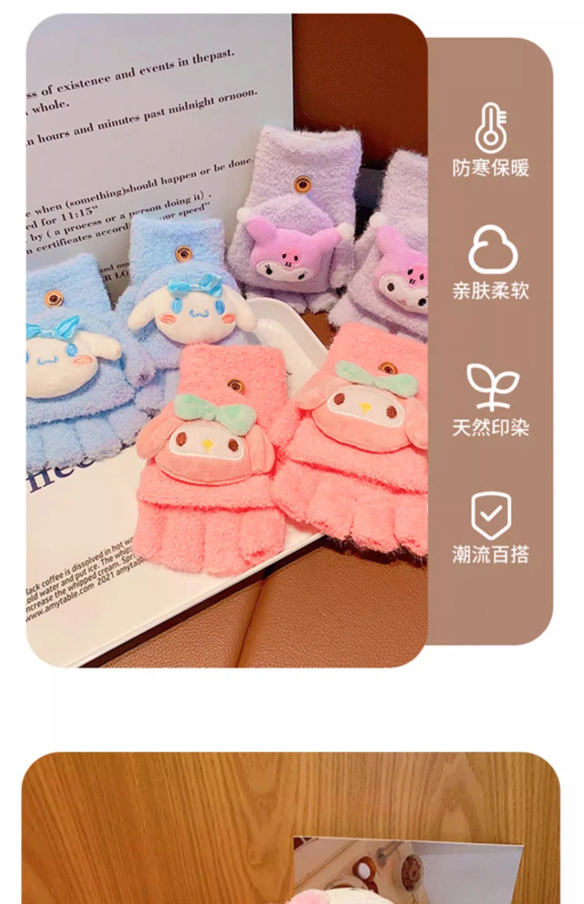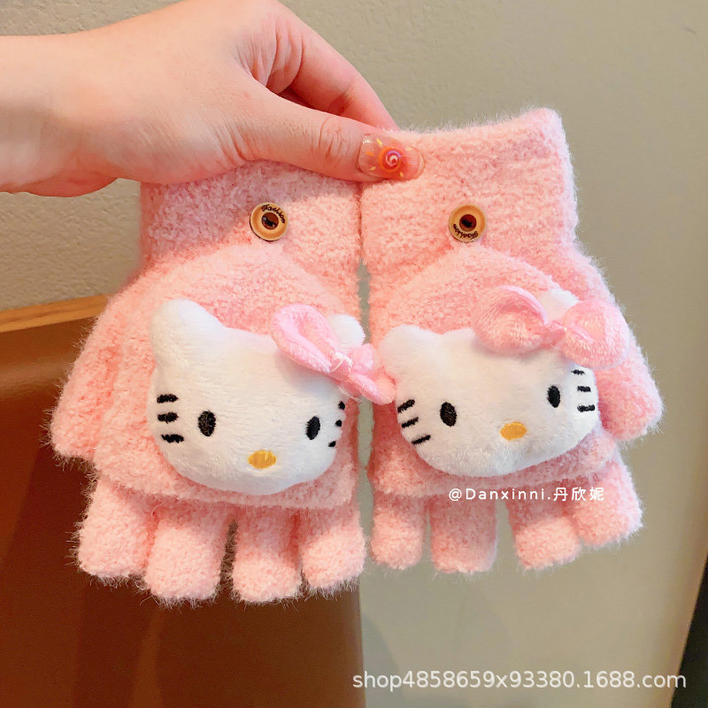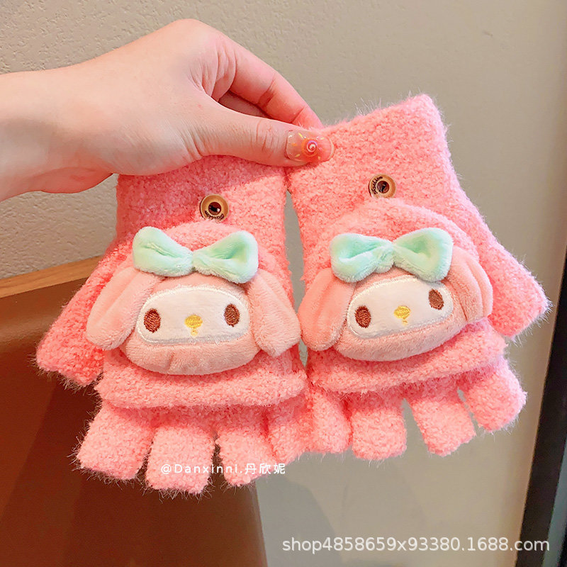 겨울 어린이 장갑 산리오 소년 소녀 다섯 손가락 장갑 방풍 및 따뜻한 초등학생 쓰기 및 손가락 방한