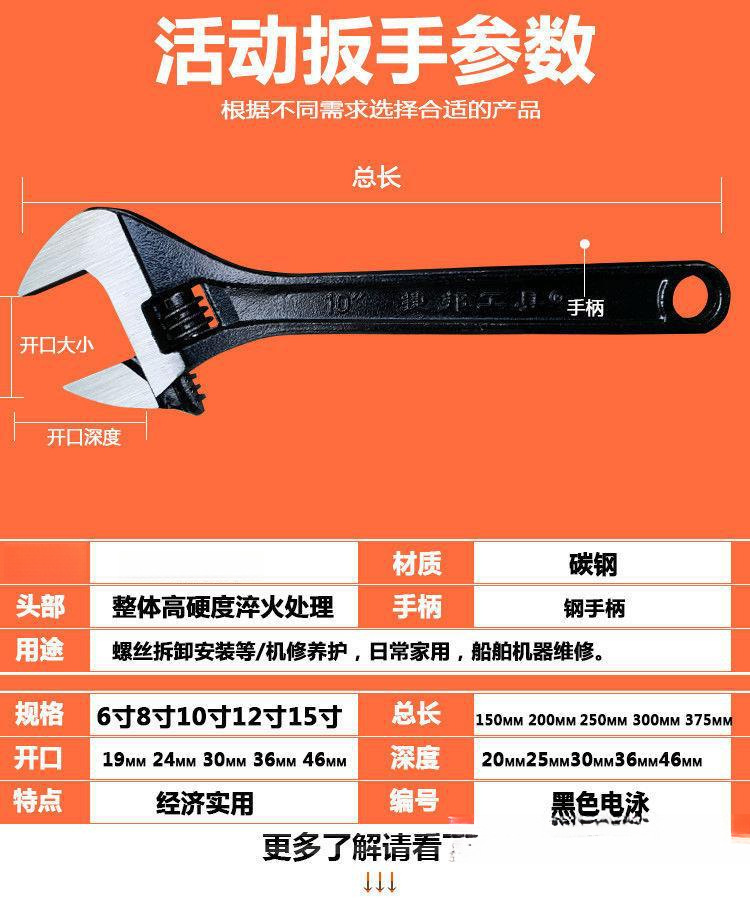 조정 가능한 렌치 공장 직접 6 인치 8 인치 10 인치 12 인치 15 인치 대형 오픈 엔드 조절 렌치