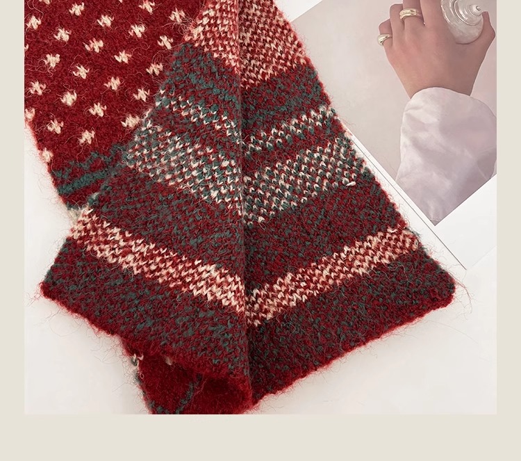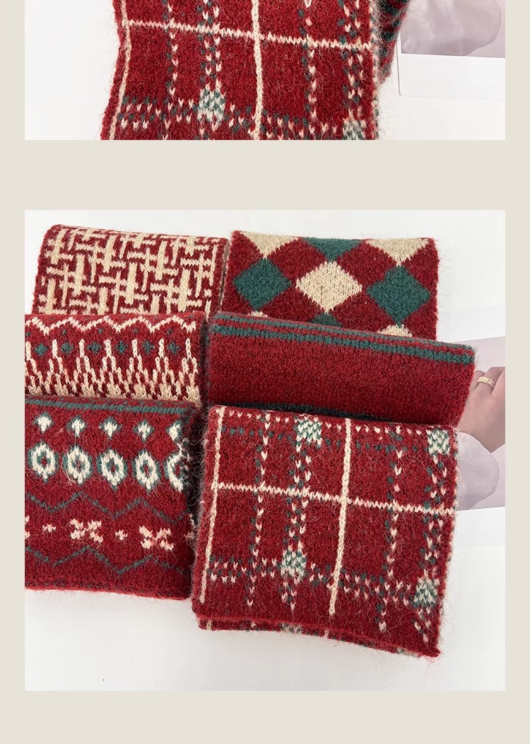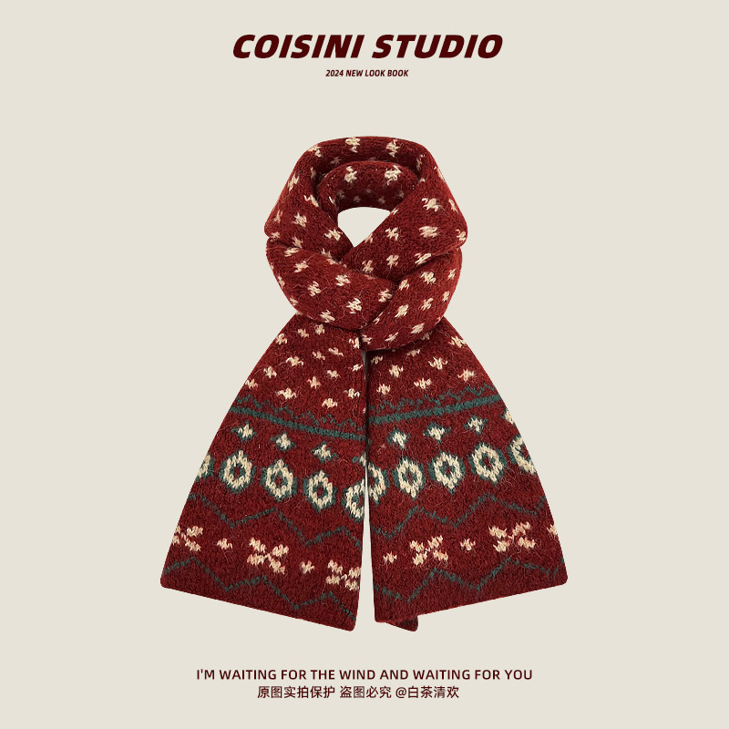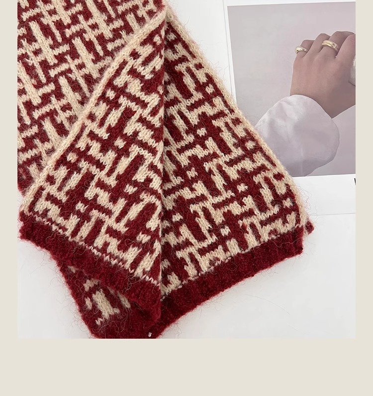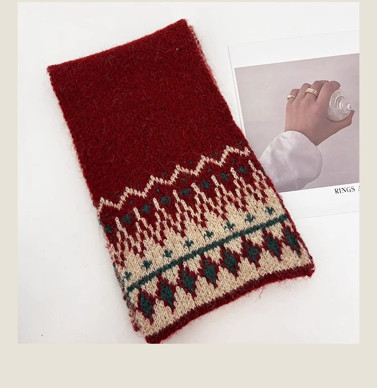 2024 새로운 도착 안코라 레드 자카드 니트 스카프 소녀 따뜻한 겨울 복고풍 화이트 울 넥 패션스토어 가기