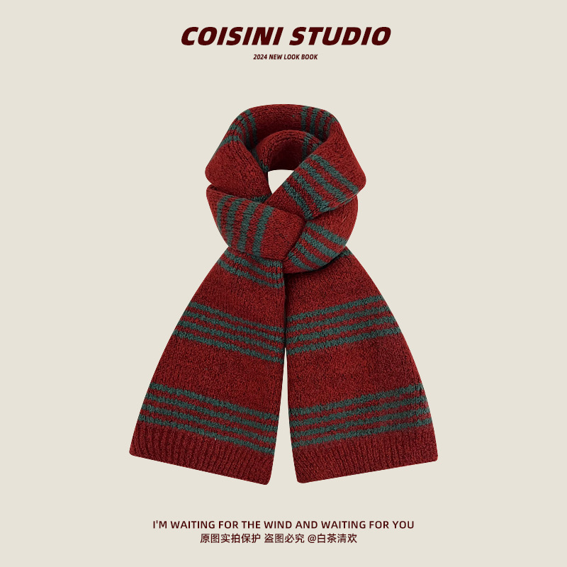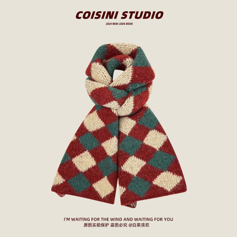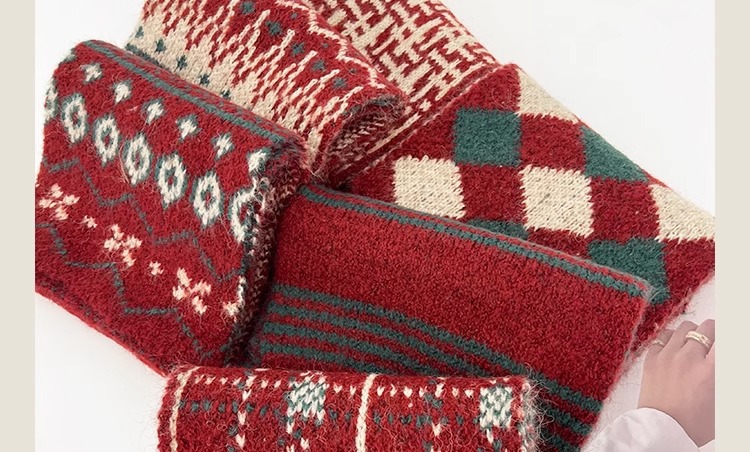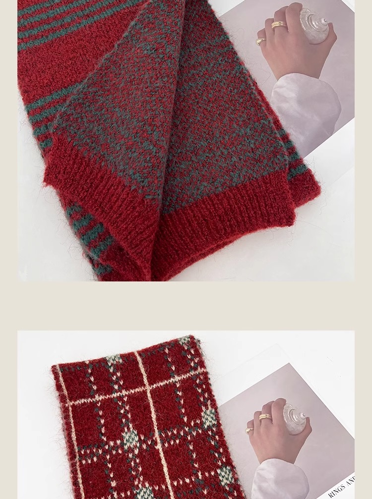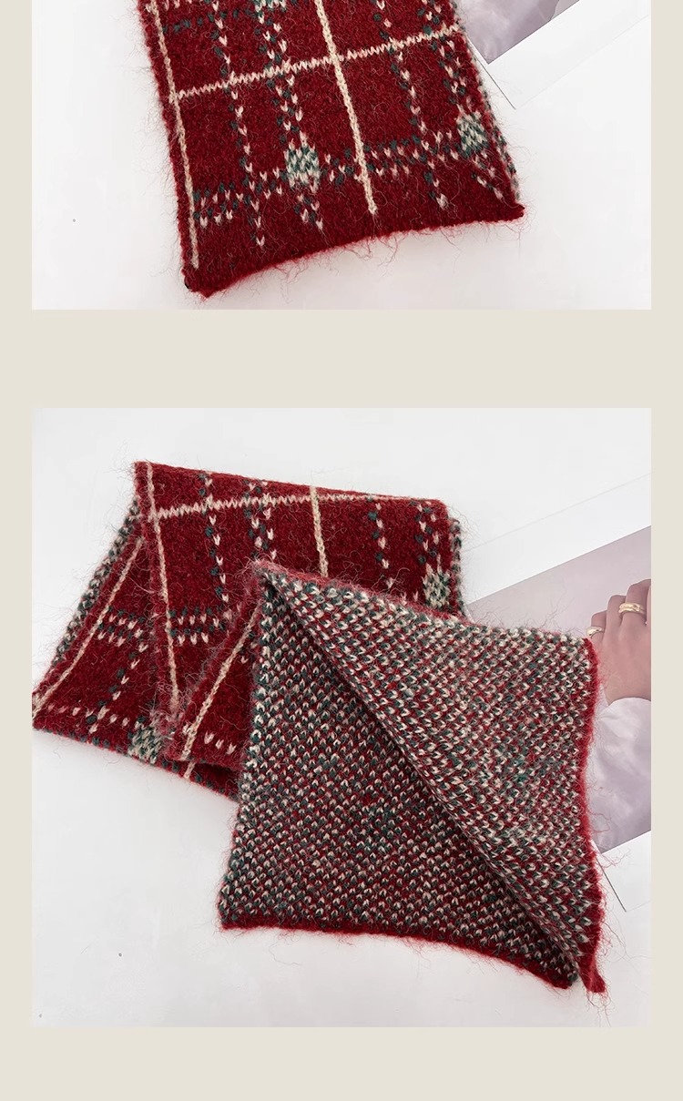 2024 새로운 도착 안코라 레드 자카드 니트 스카프 소녀 따뜻한 겨울 복고풍 화이트 울 넥 패션스토어 가기