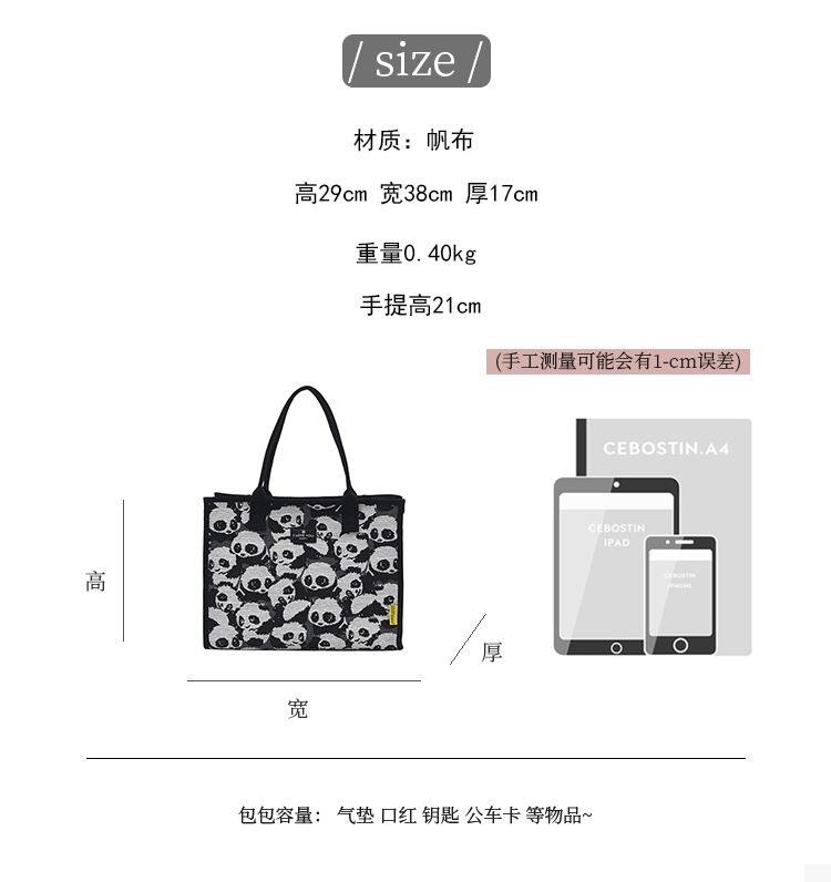 도매 귀여운 만화 인쇄 된 토트 가방 대용량 가방 여성 대학생 클래스 통근 캔버스 가방 미라 가방스토어 가기