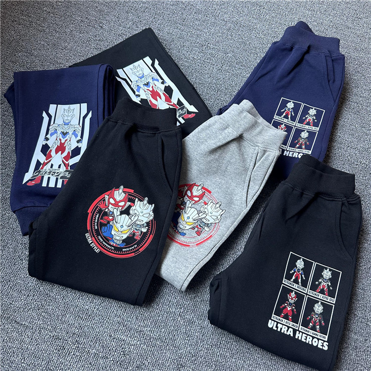 日单外贸卡通动漫英雄系列童装毛圈休闲长裤