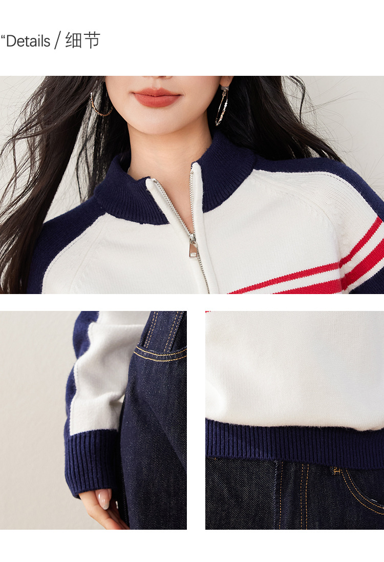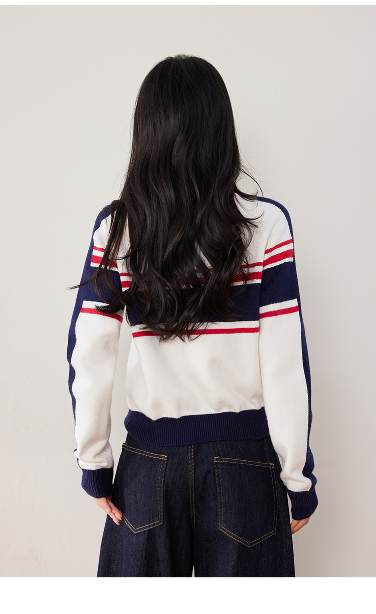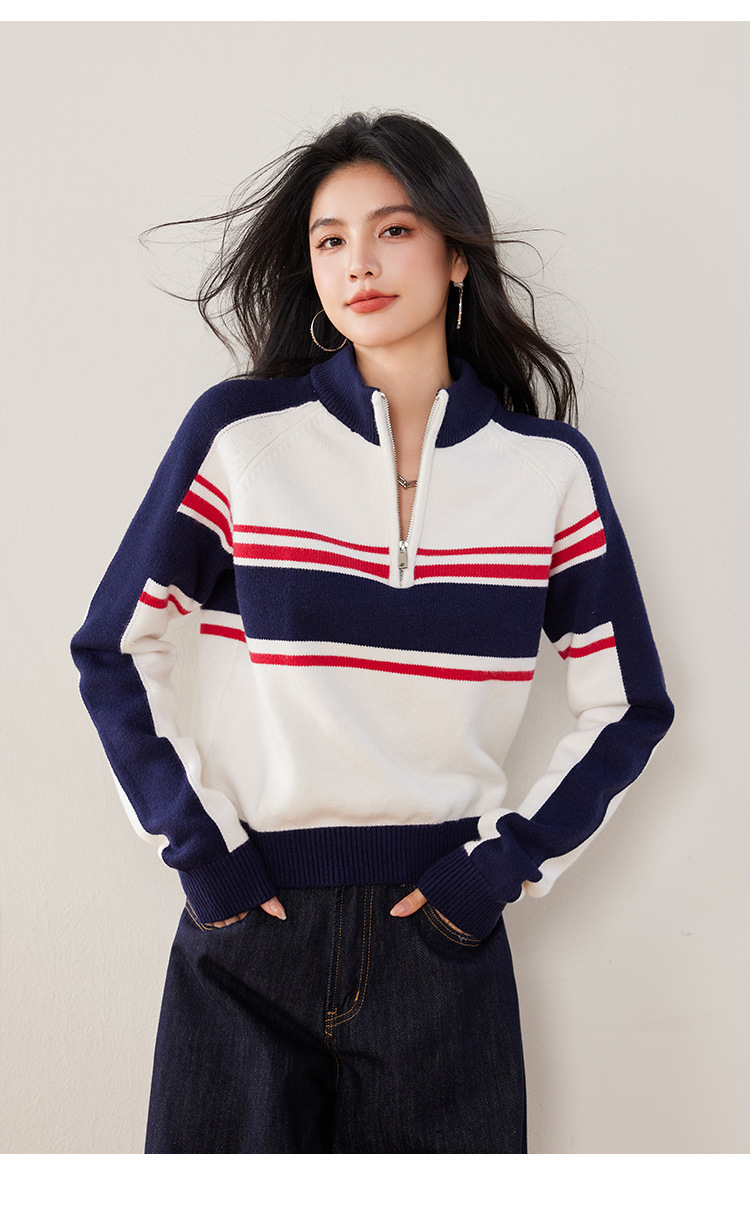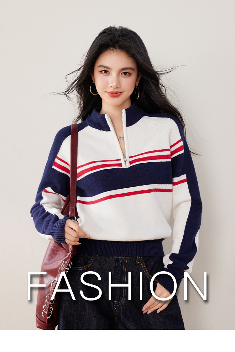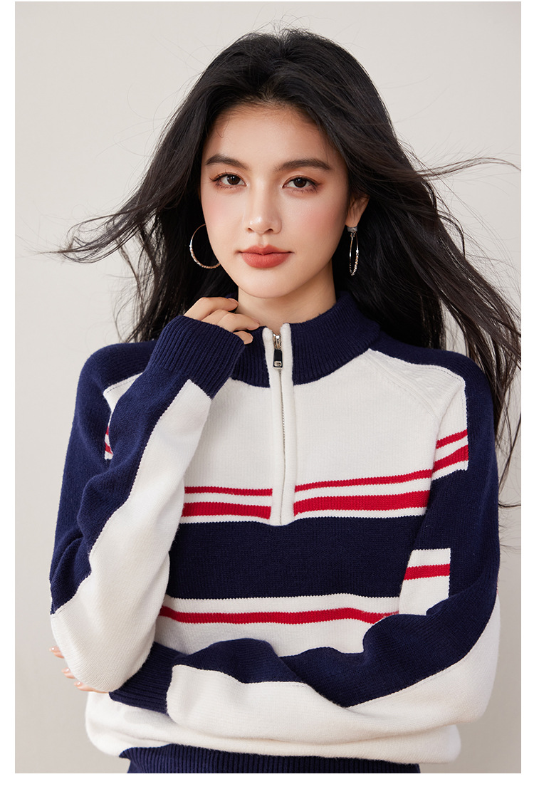 스포티 스타일 스웨터 여성의 2024 겨울 새로운 한국 스타일 패션 다채로운 줄무늬 하프 터틀넥 지퍼 디자인 니트 스웨터