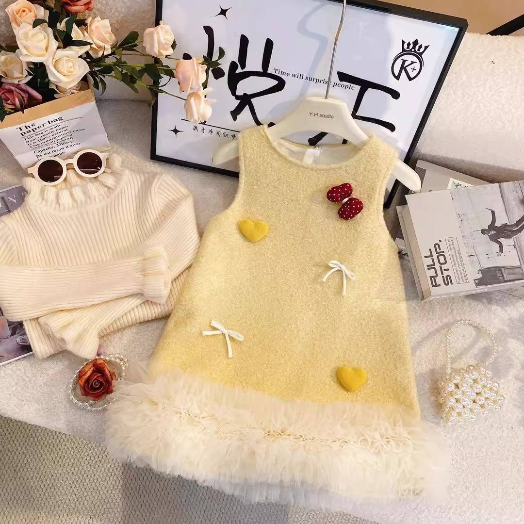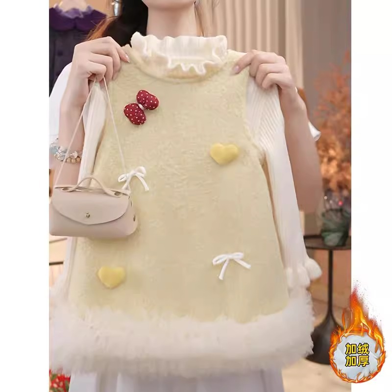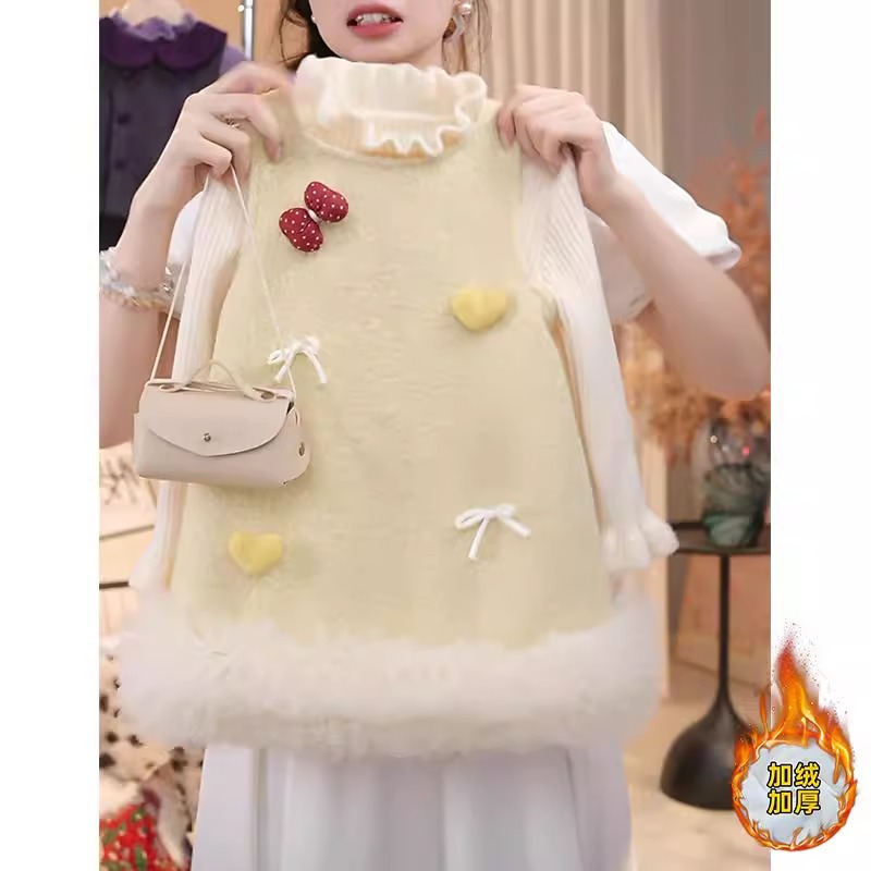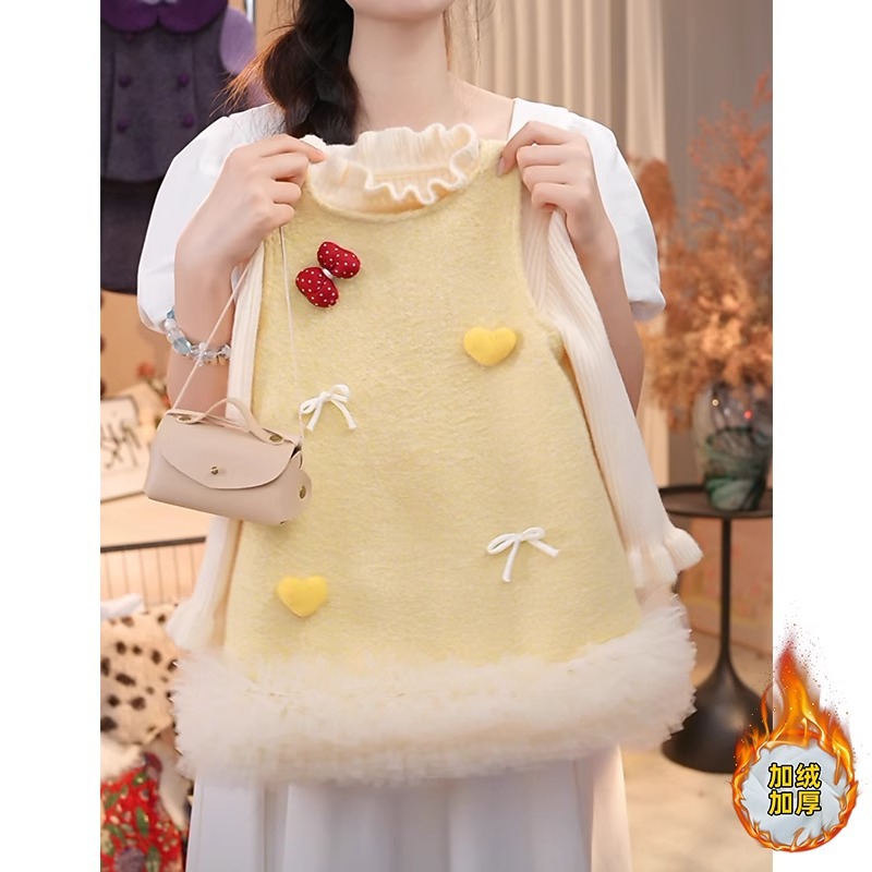 소녀 만화 원피스 가을과 겨울 반 터틀넥 스웨터 레이스 조끼 두꺼운 기모 공주 스커트 샤넬 스타일스토어 가기