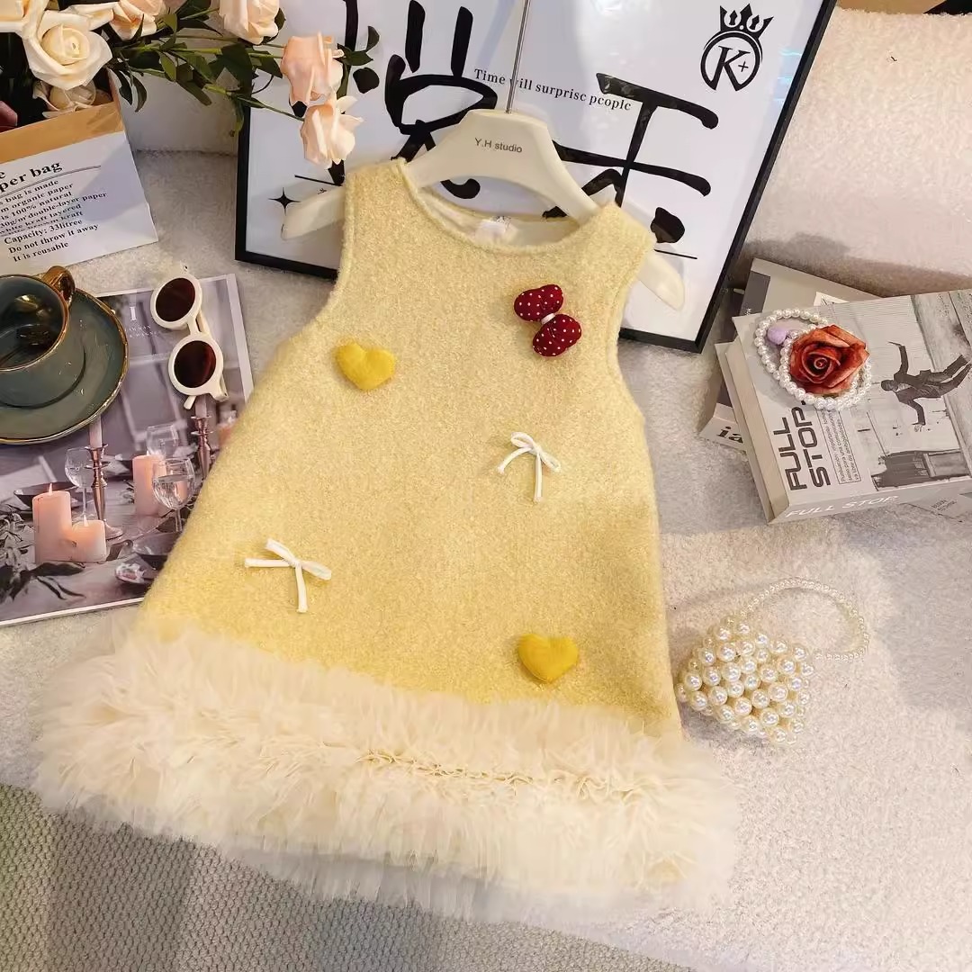 소녀 만화 원피스 가을과 겨울 반 터틀넥 스웨터 레이스 조끼 두꺼운 기모 공주 스커트 샤넬 스타일