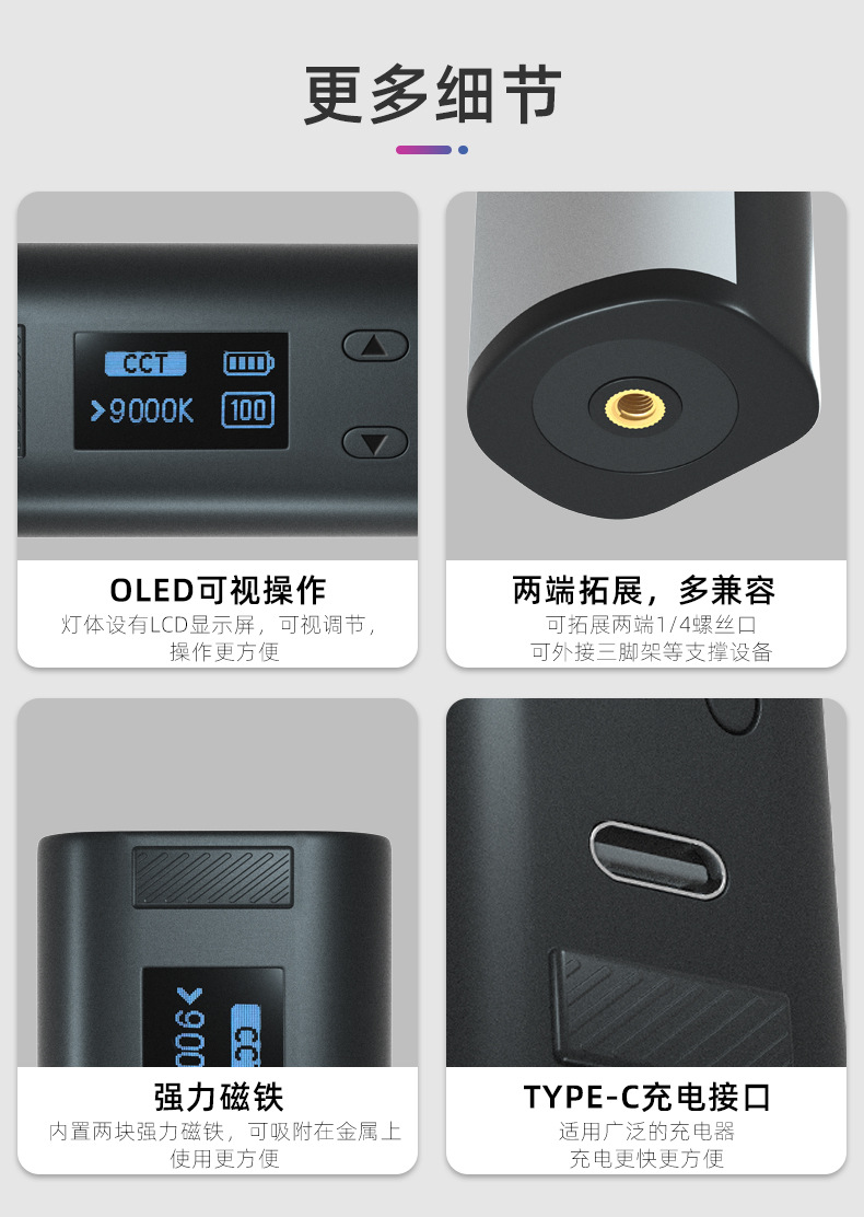• [마그네틱 RGB 스틱 라이트] + 데스크탑 삼각대(ABS 모델)(LCD 화면)
