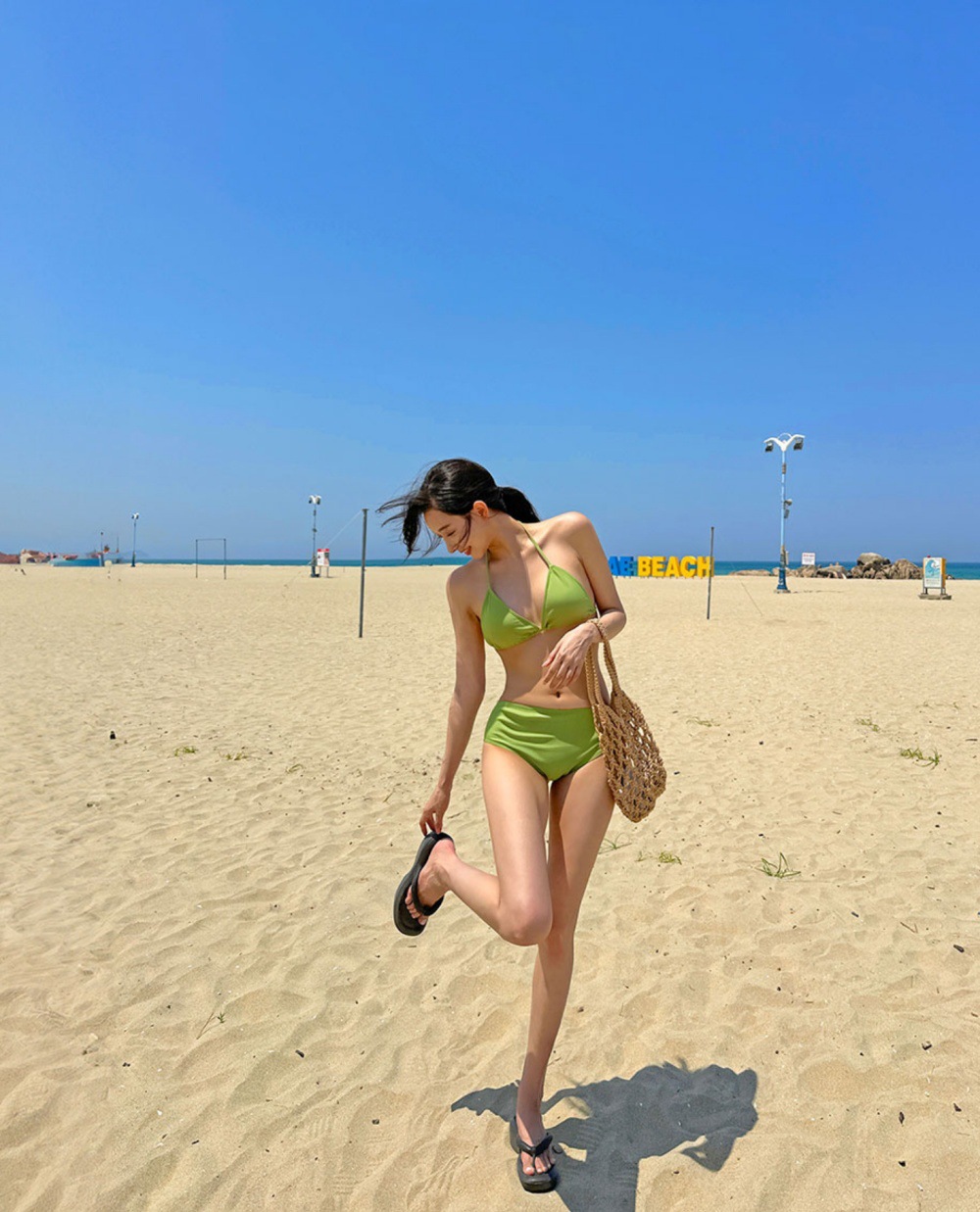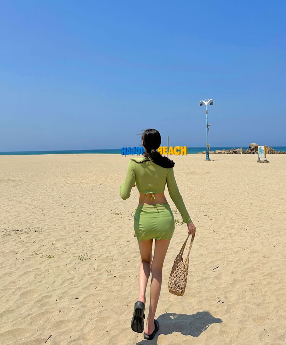 여성용 수영복 여성용 하이 엔드 스플릿 비키니 퓨어 온천 한국 인스타그램 스타일 긴소매 선스크린 수영복스토어 가기