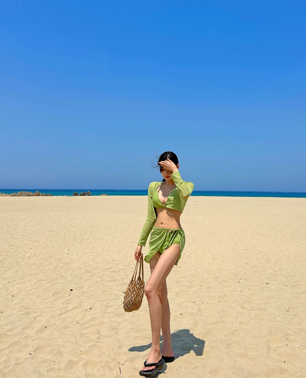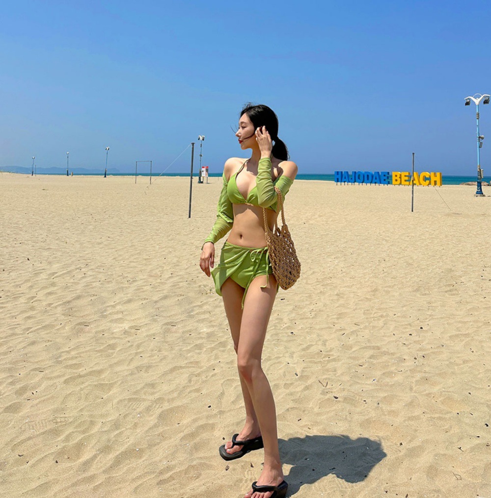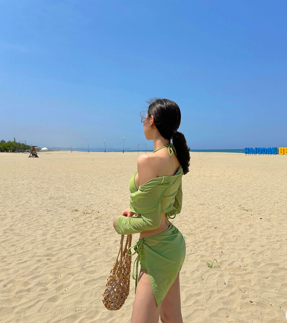 여성용 수영복 여성용 하이 엔드 스플릿 비키니 퓨어 온천 한국 인스타그램 스타일 긴소매 선스크린 수영복
