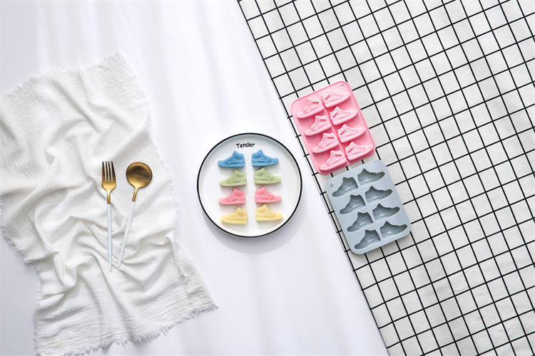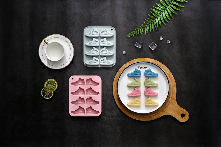 재고 8 심지어 운동화 모양의 초콜릿 금형 베이킹 도구 맛있는 젤리 드롭 접착제 얼음 블록 실리콘 금형