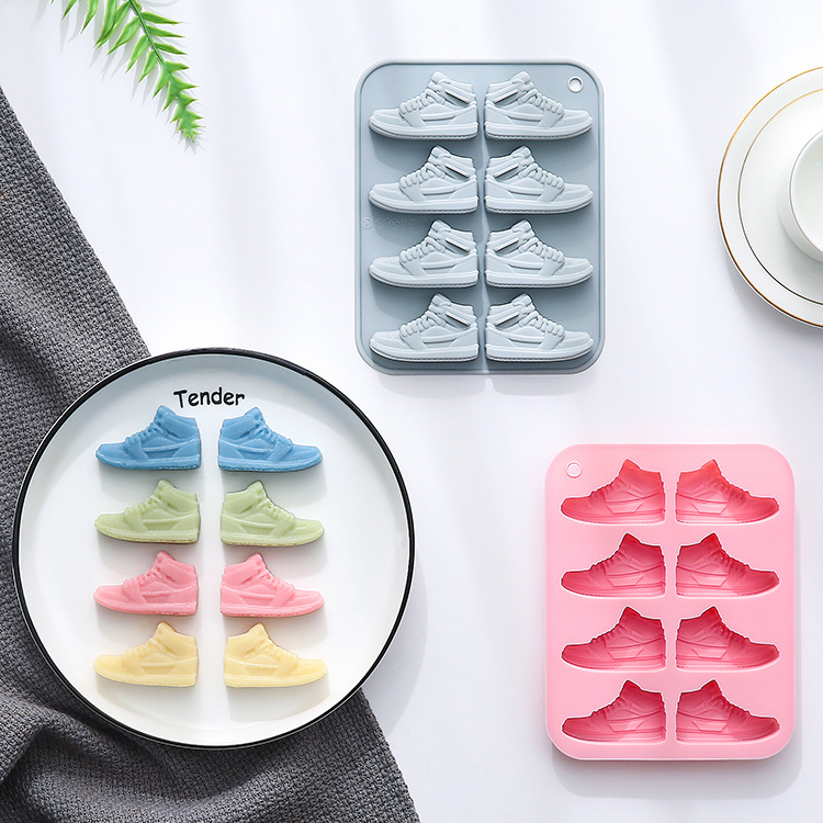 재고 8 심지어 운동화 모양의 초콜릿 금형 베이킹 도구 맛있는 젤리 드롭 접착제 얼음 블록 실리콘 금형스토어 가기