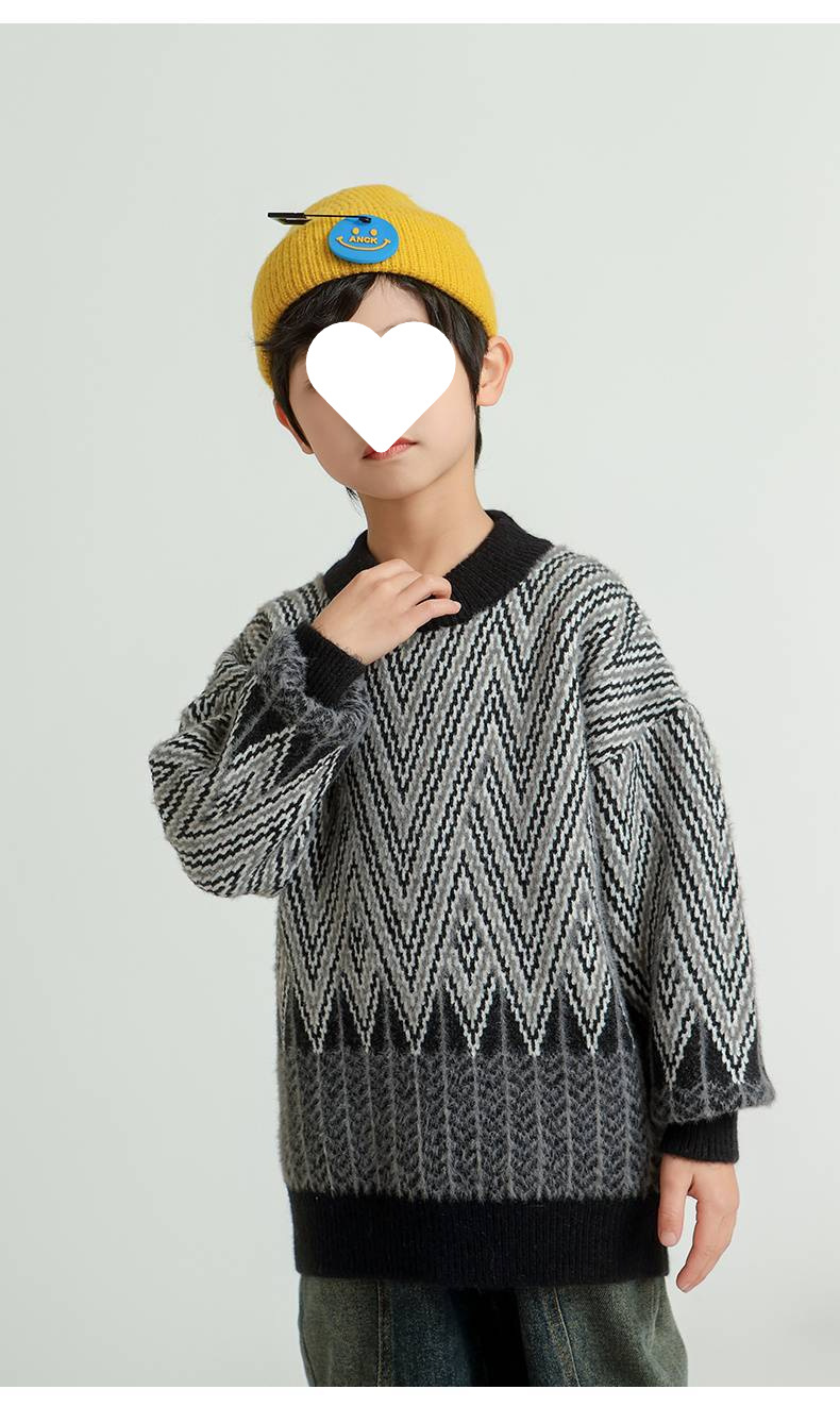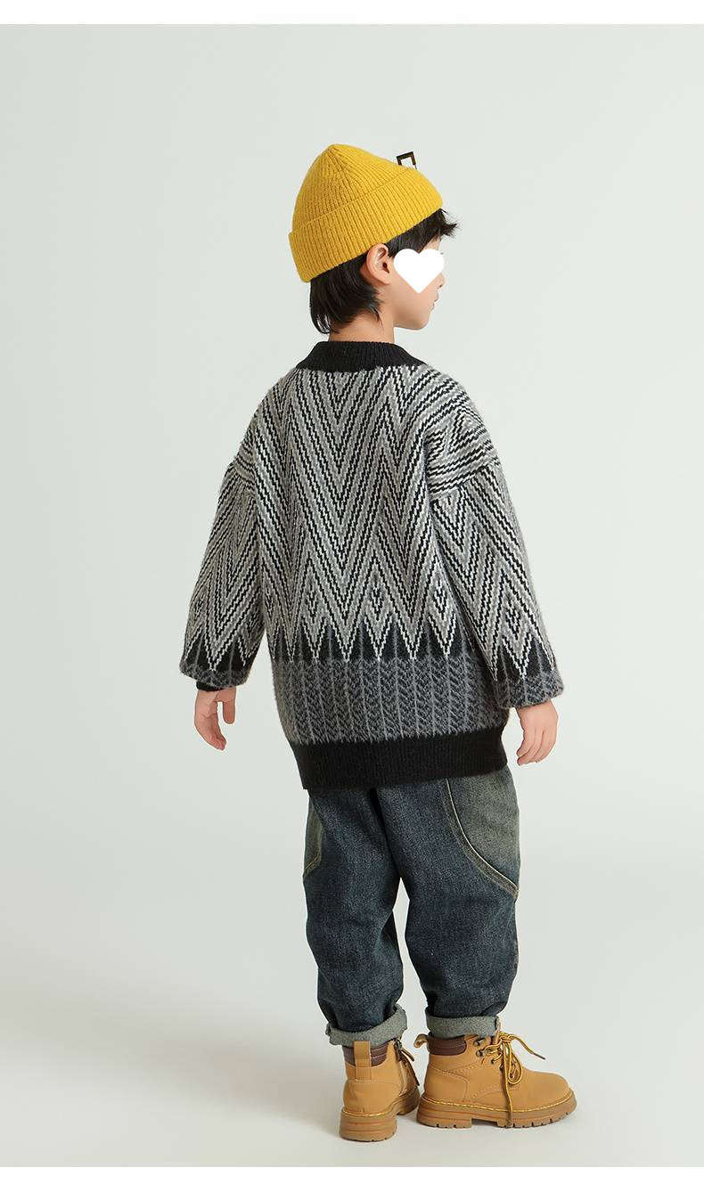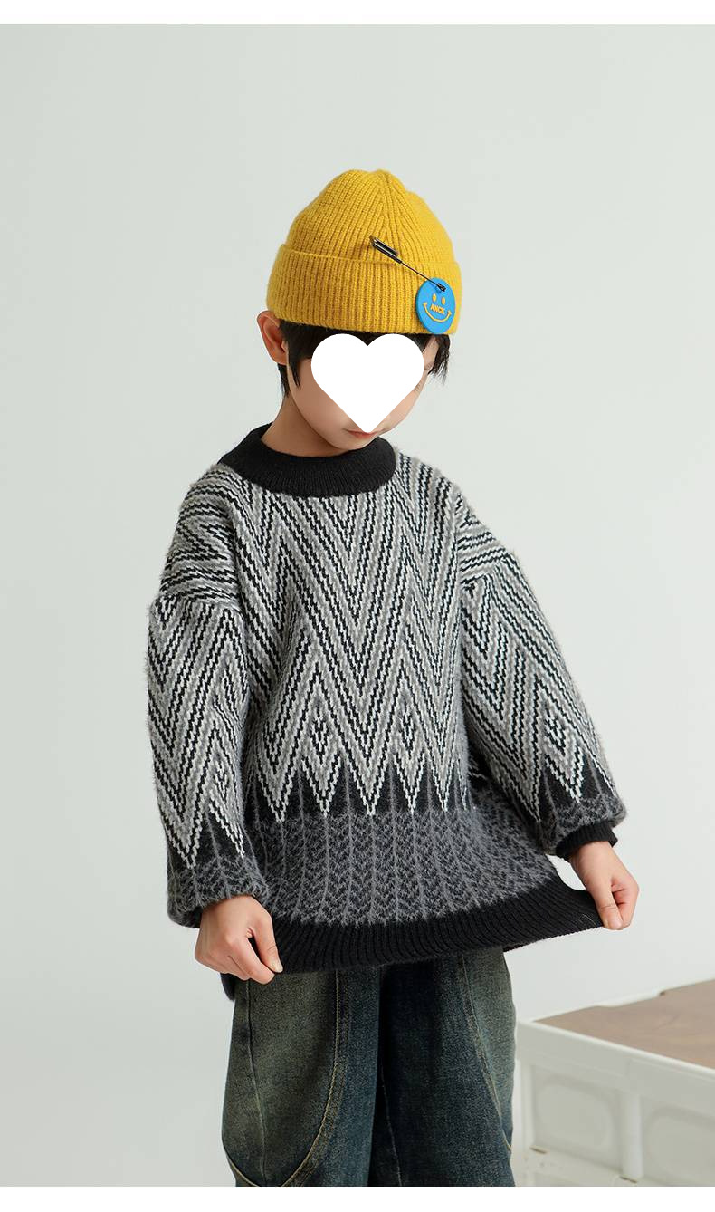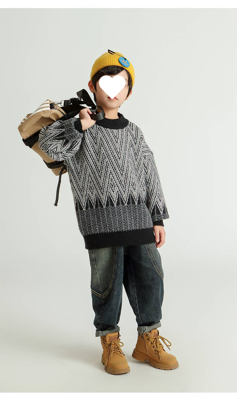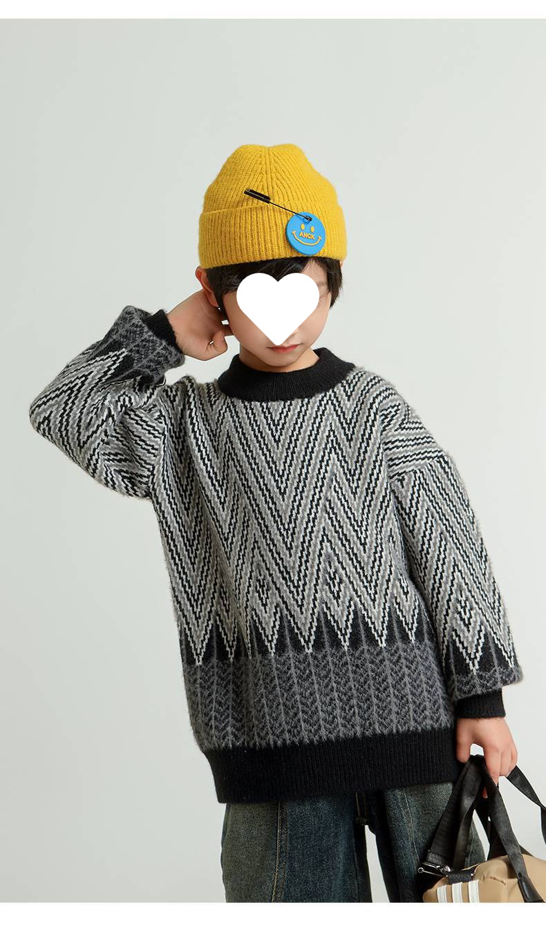어린이 스웨터 소년의 가을과 겨울 2024 새로운 서양식 중년 어린이 두꺼운 따뜻한 소년의 밍크 벨벳 스웨터 트렌디스토어 가기