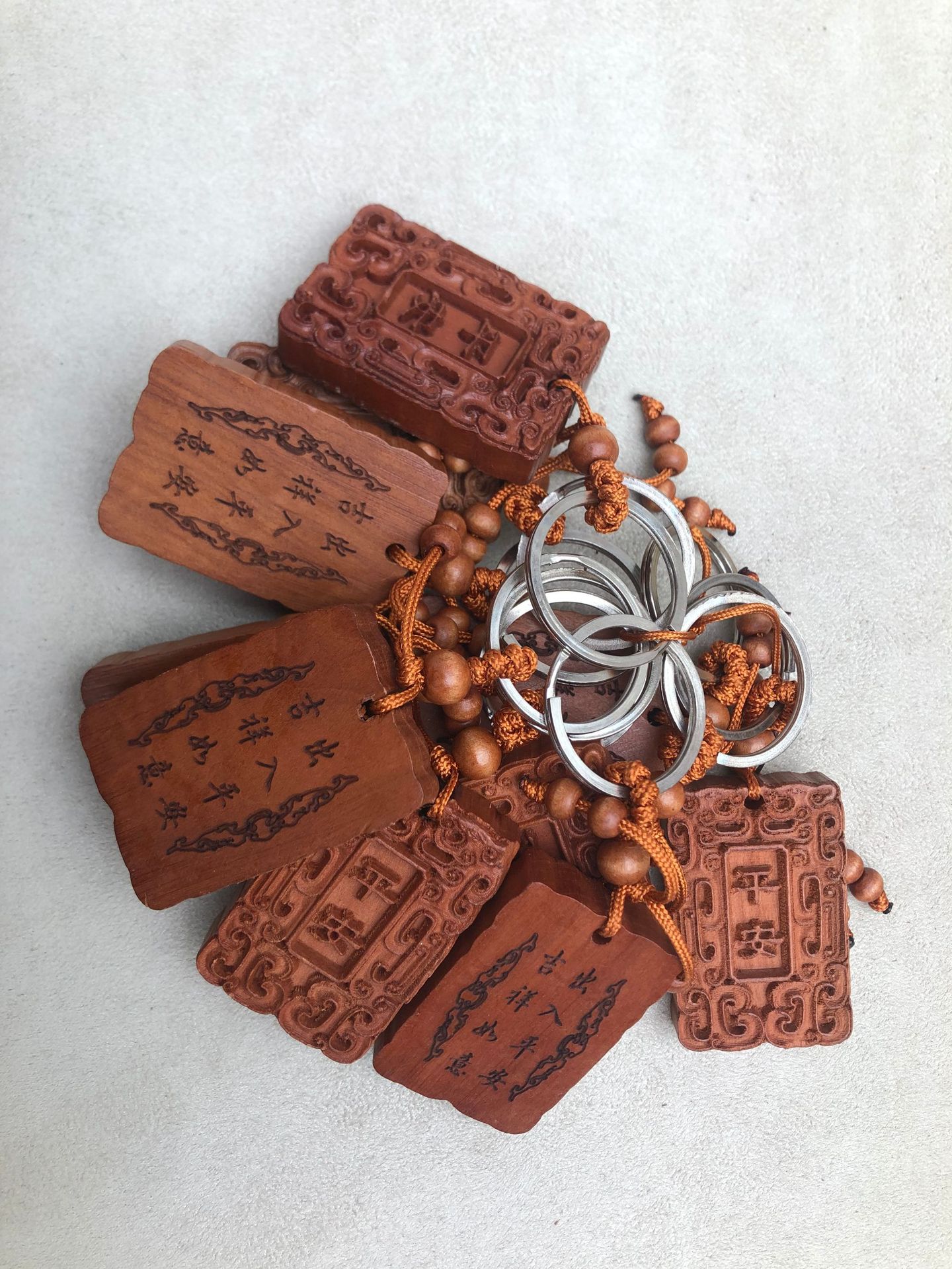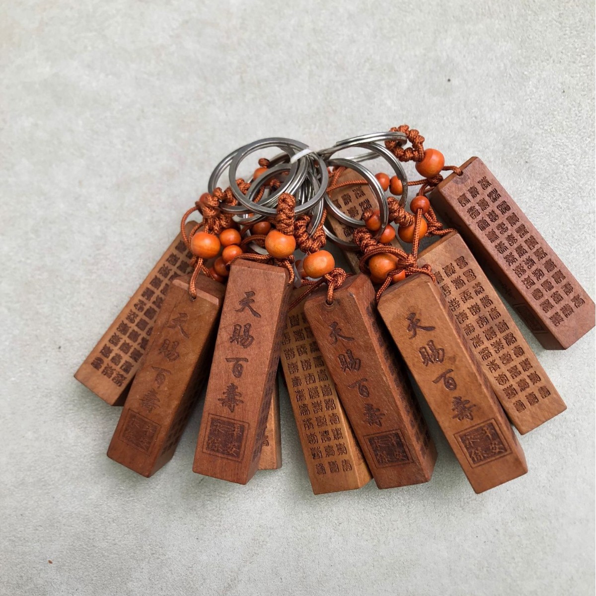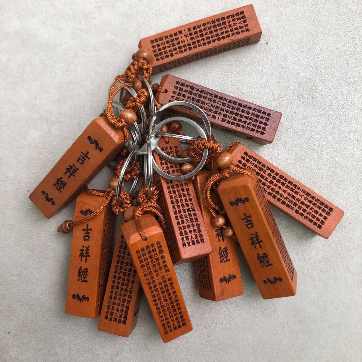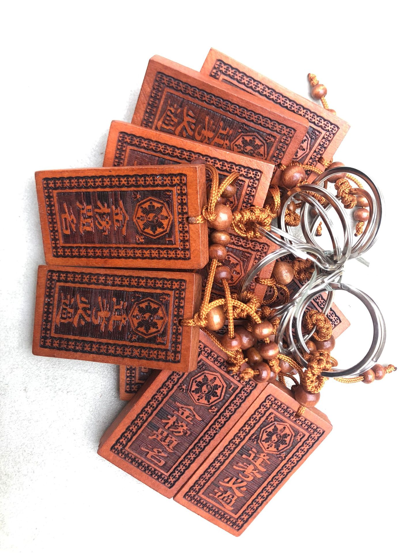 • FZ 복숭아 나무 사각형 씰 열쇠 고리 + 길조 경전