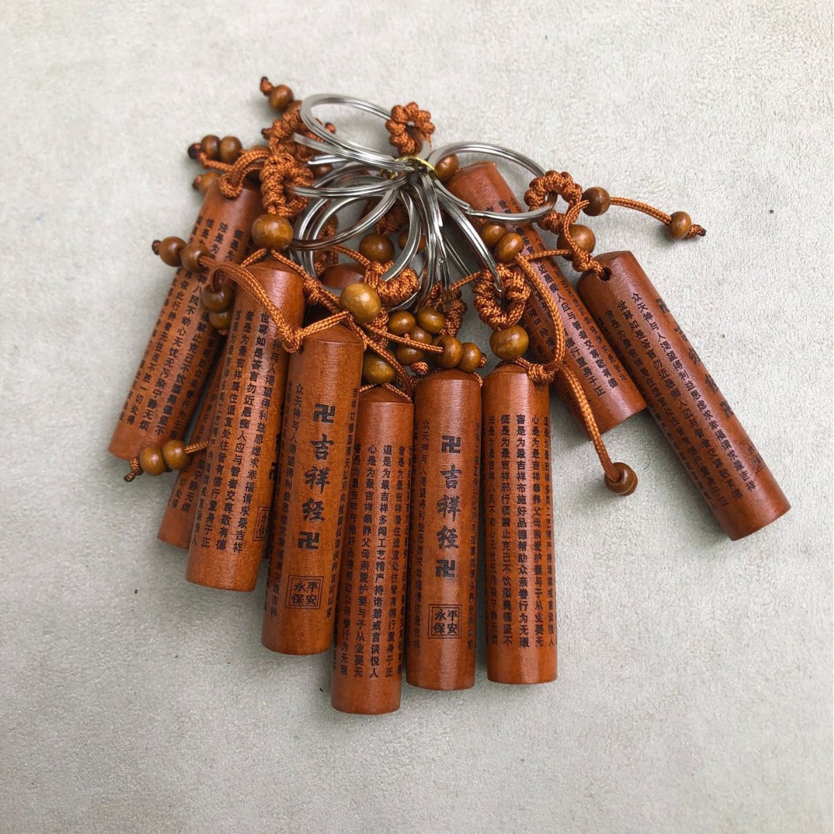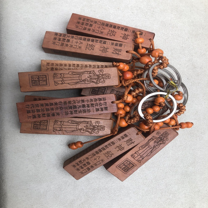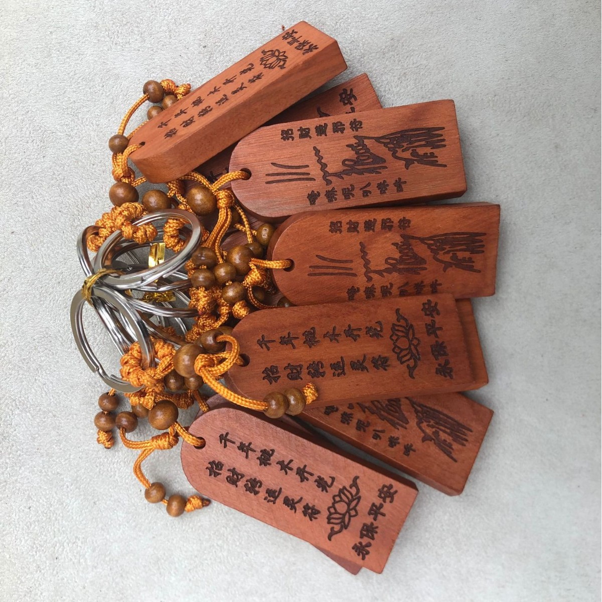 • FZ 복숭아 나무 사각형 씰 열쇠 고리 + 길조 경전