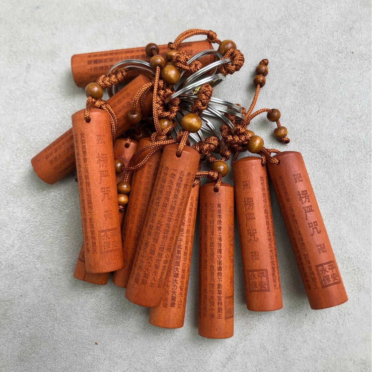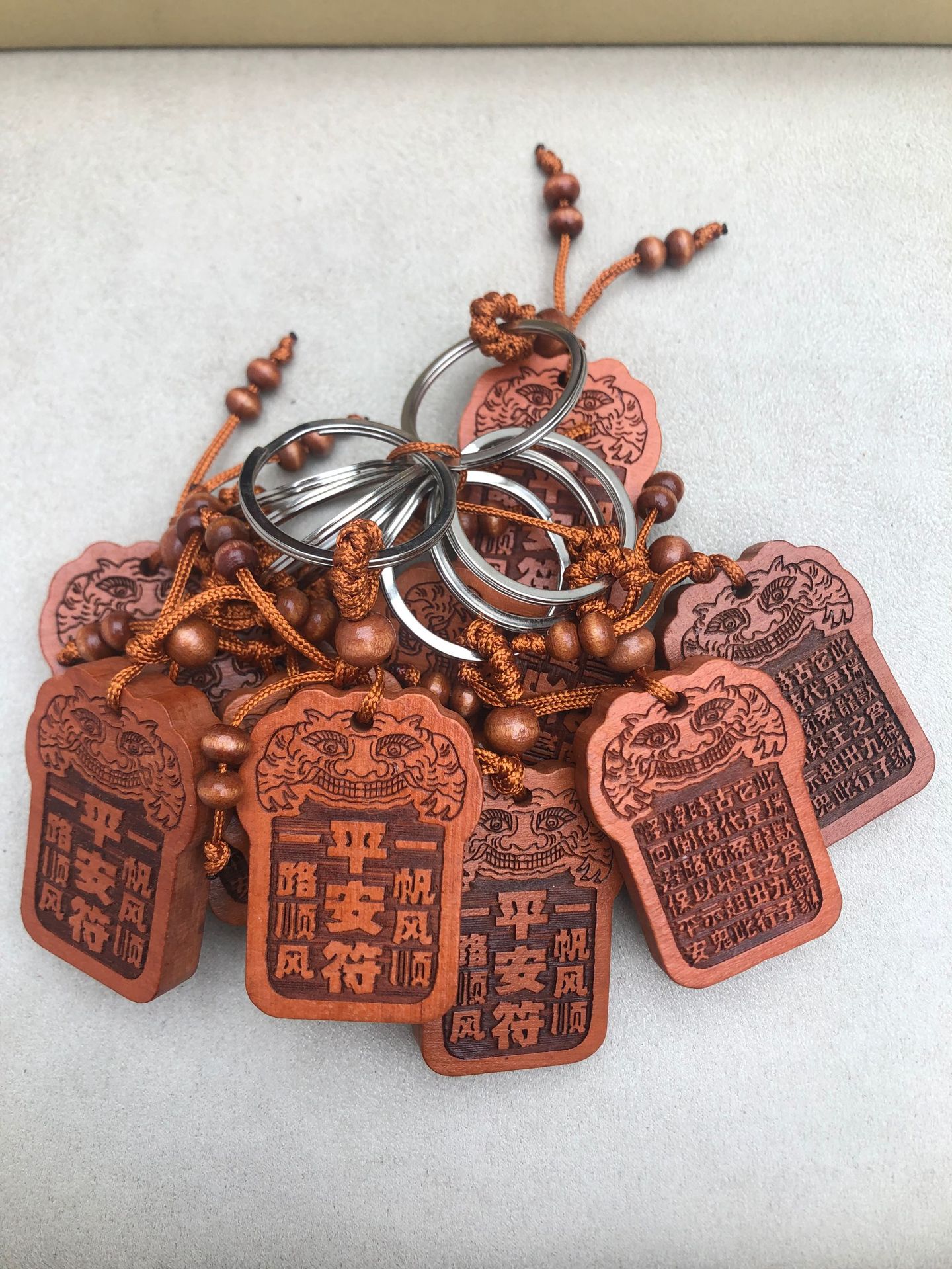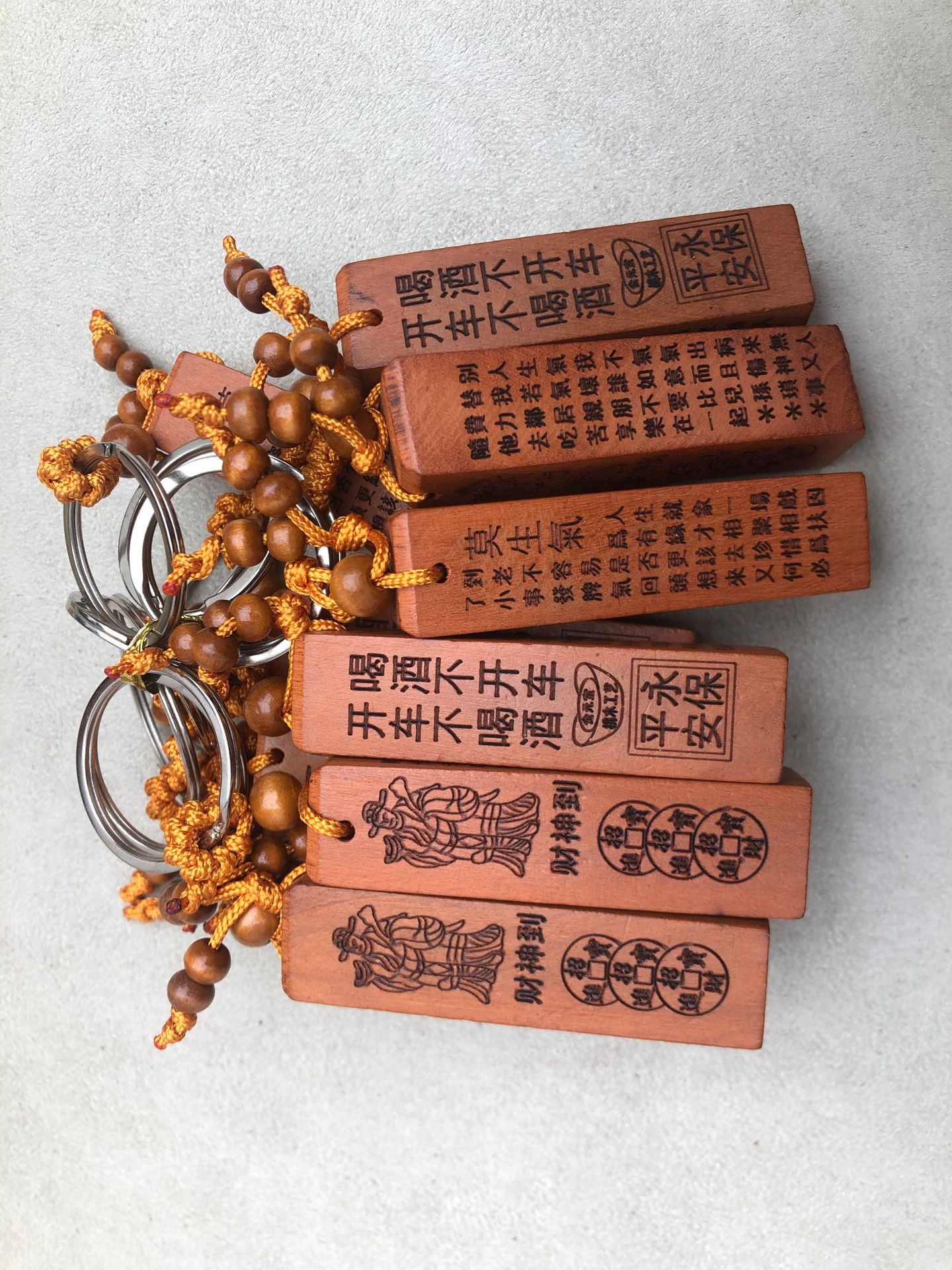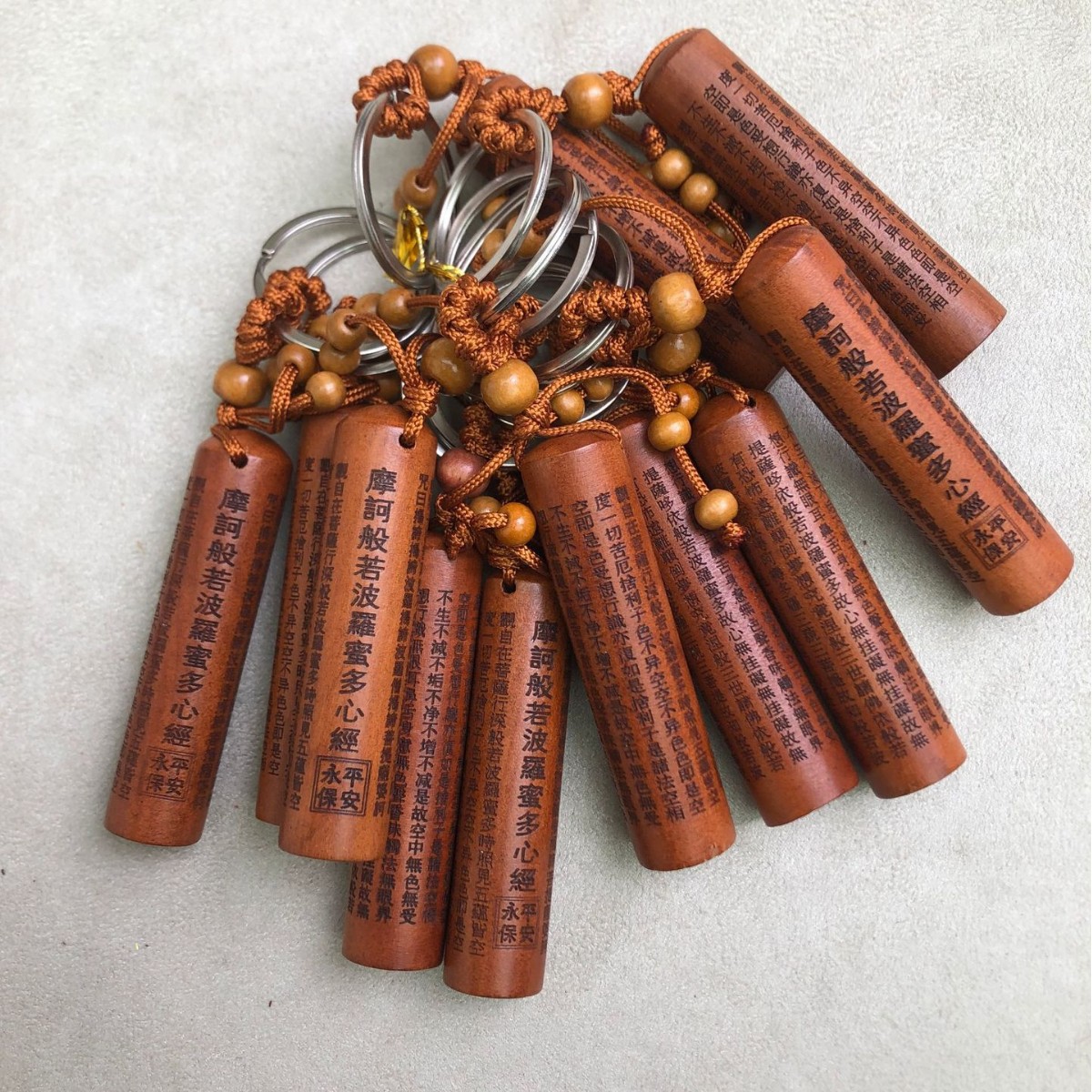 • FZ 복숭아 나무 사각형 씰 열쇠 고리 + 길조 경전