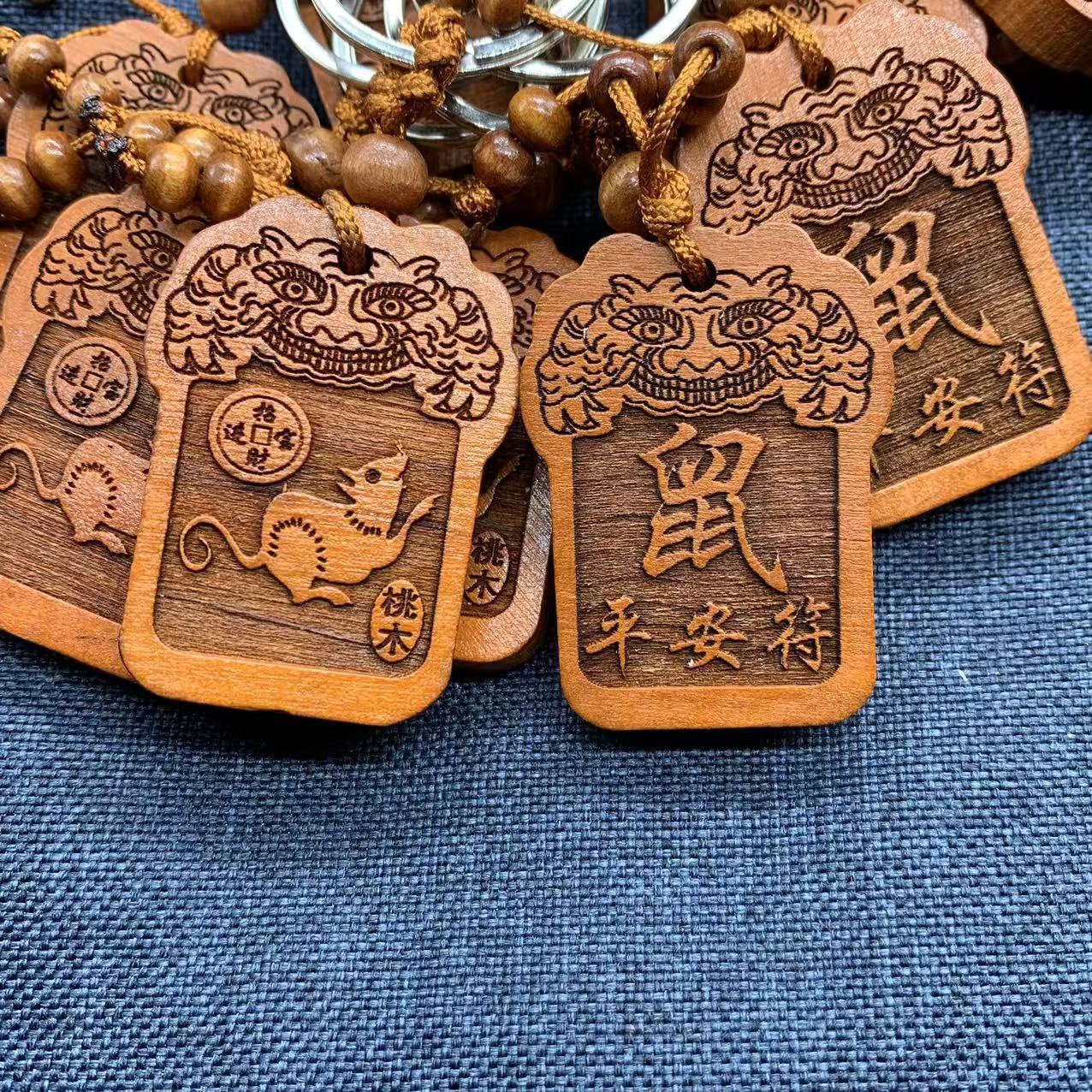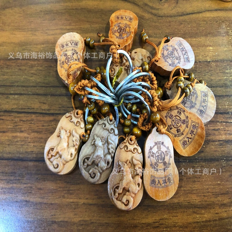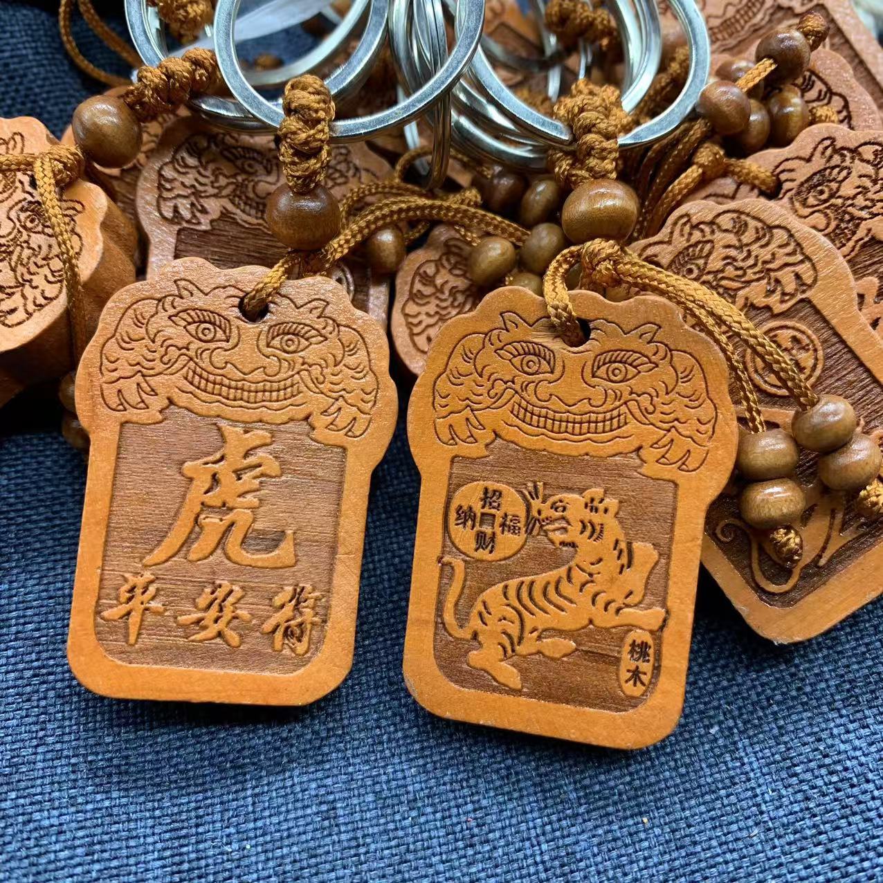 새로운 복숭아나무 안전복(平安福) 팔괘(十二生肖) 열쇠고리 선물용 펜던트 도매, 행운을 기원합니다스토어 가기