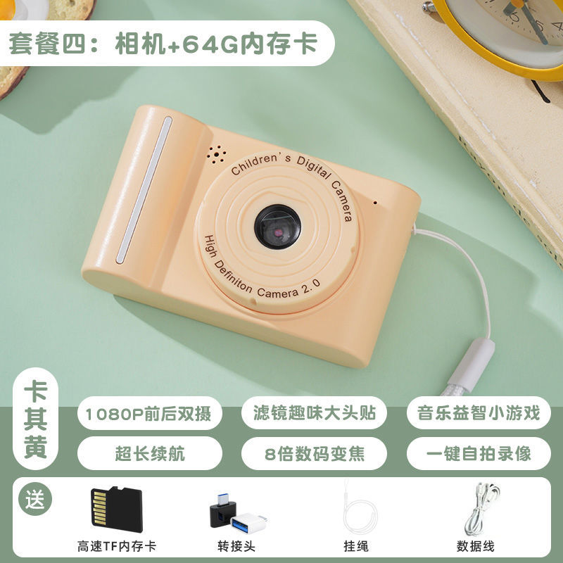 • 고화질 듀얼 카메라 카키 옐로우(셀카를 찍고 휴대폰에 연결하여 음악을 들을 수 있음) - 고속 64G 메모리 카드 [럭셔리 선물 패키지]
