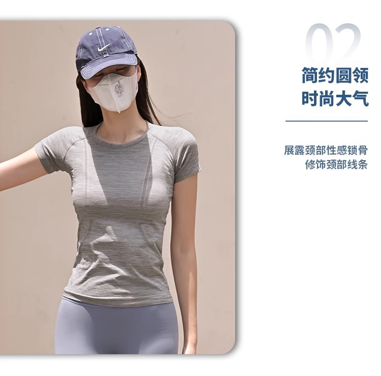 룰루 스포츠 반팔 여름 달리기 훈련 빠른 건조 통기성 티셔츠 여성용 타이트 요가 세트 필라테스 피트니스 세트스토어 가기