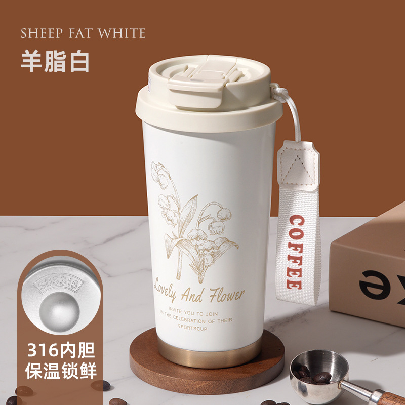 2025 새로운 은방울꽃 보온병 컵 316 스테인레스 스틸 커피 컵 소녀 대용량 고가치 밀짚 워터 컵