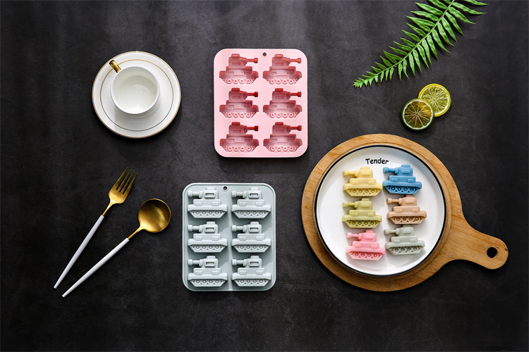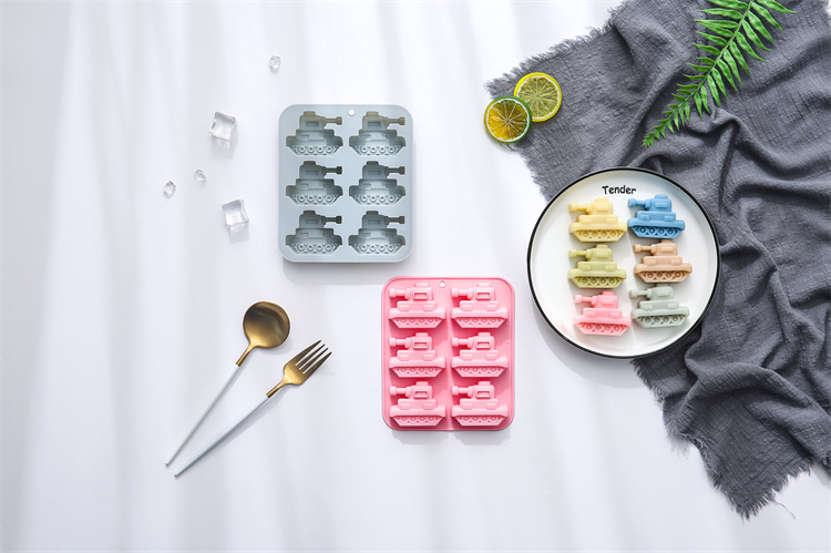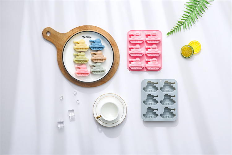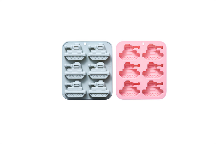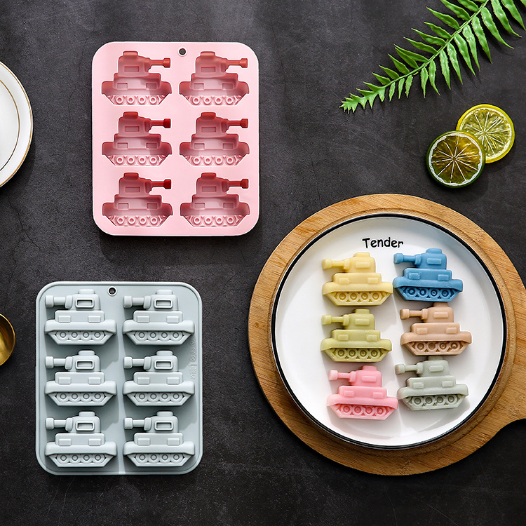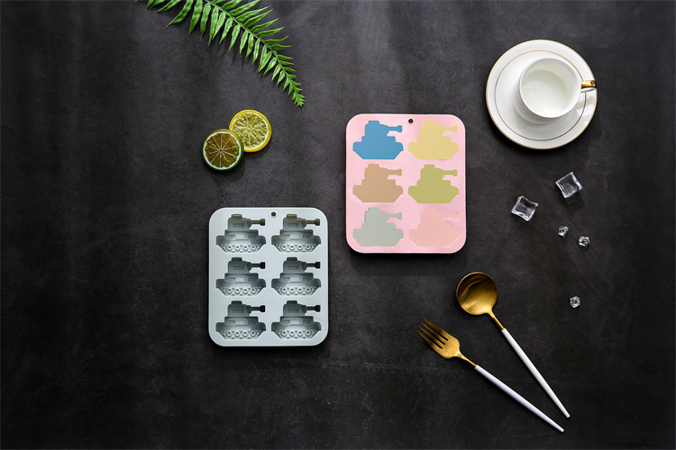 재고 6 짝수 탱크 모양 실리콘 금형 케이크 베이킹 도구 떨어지는 접착제 아이스 큐브 연삭 도구 소프트 캔디 아이스 메이커