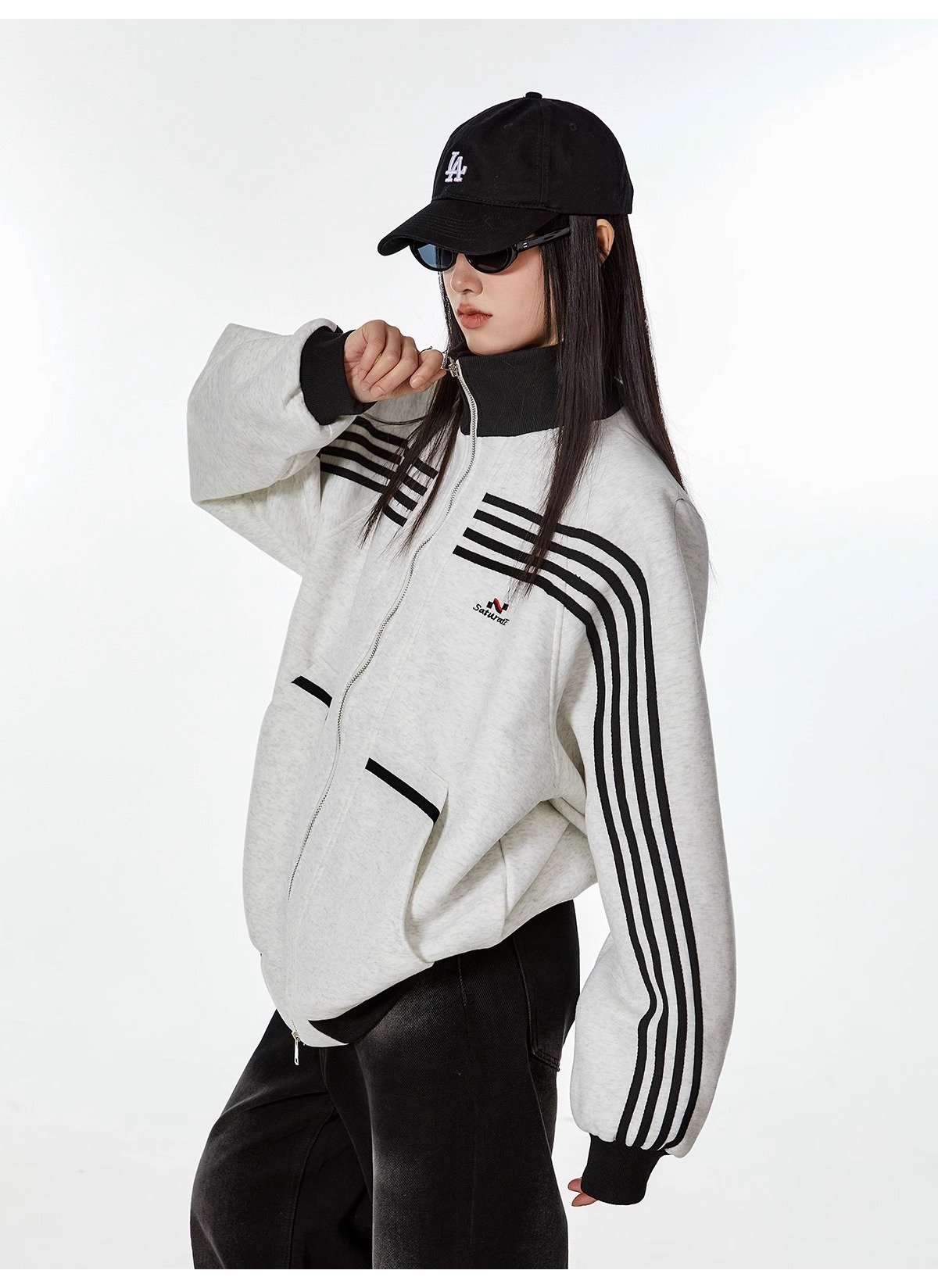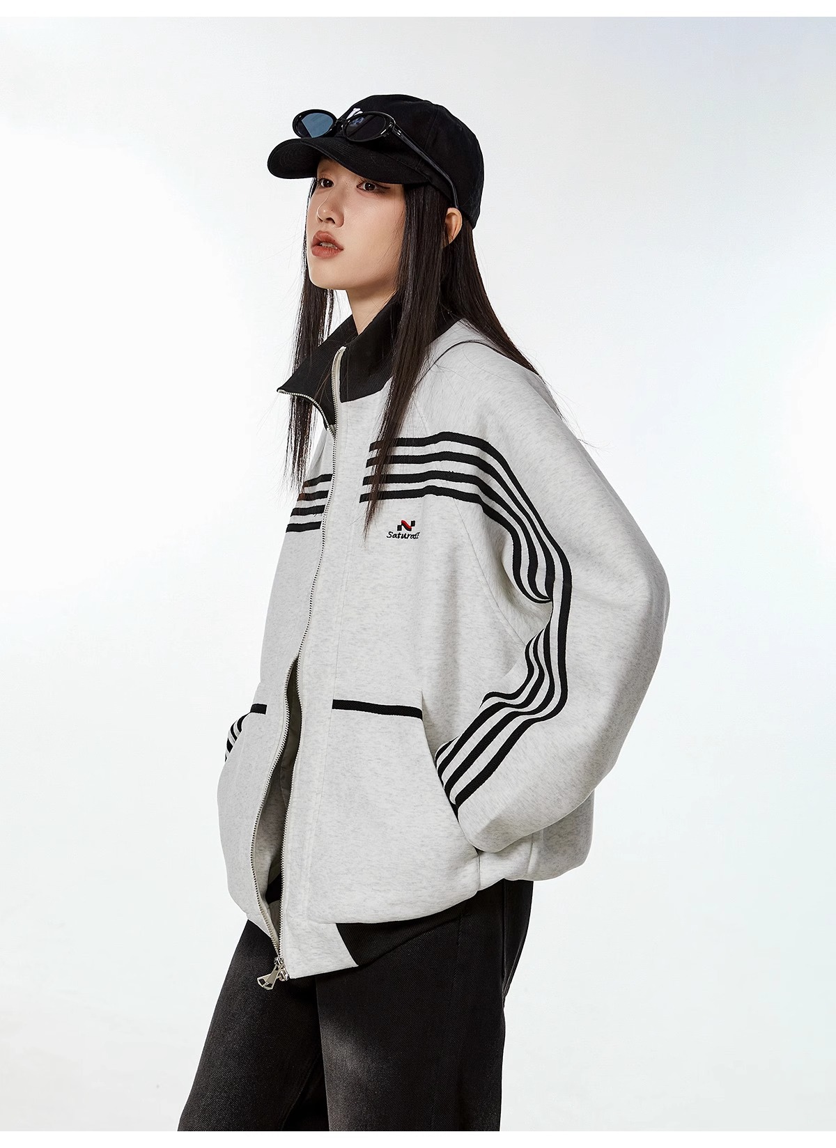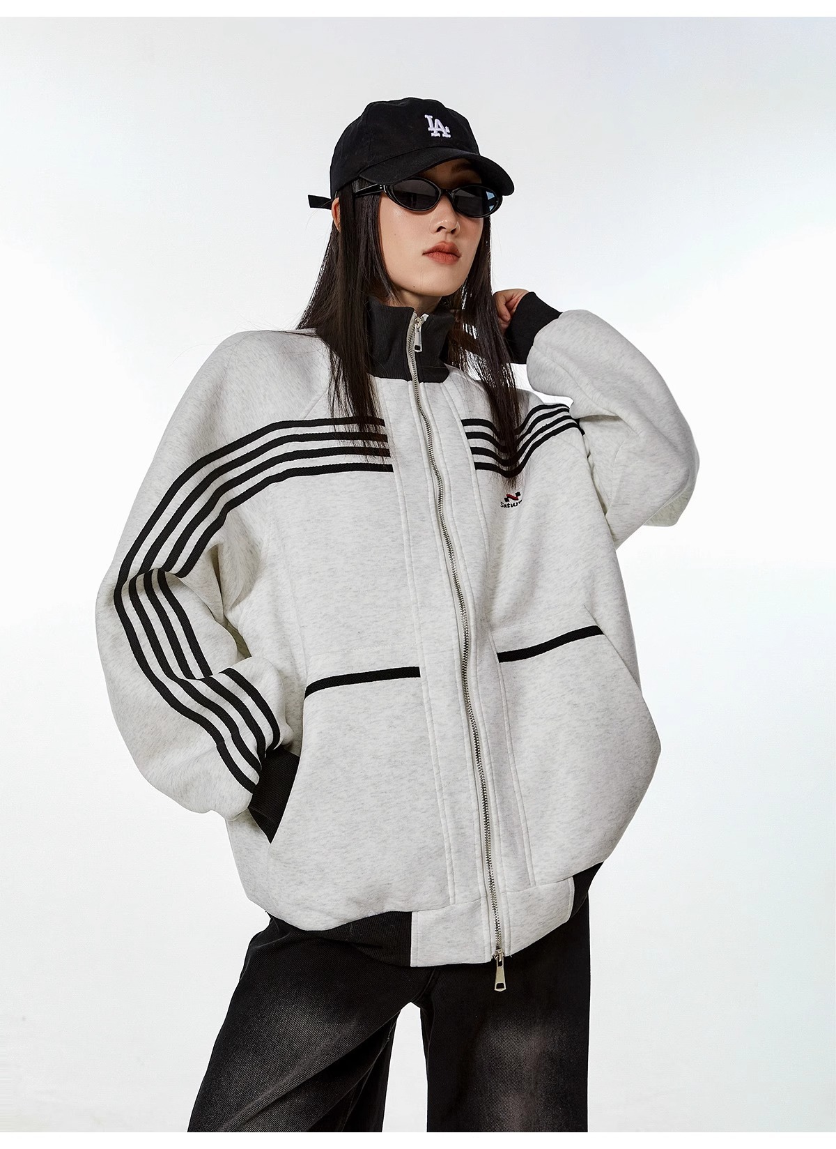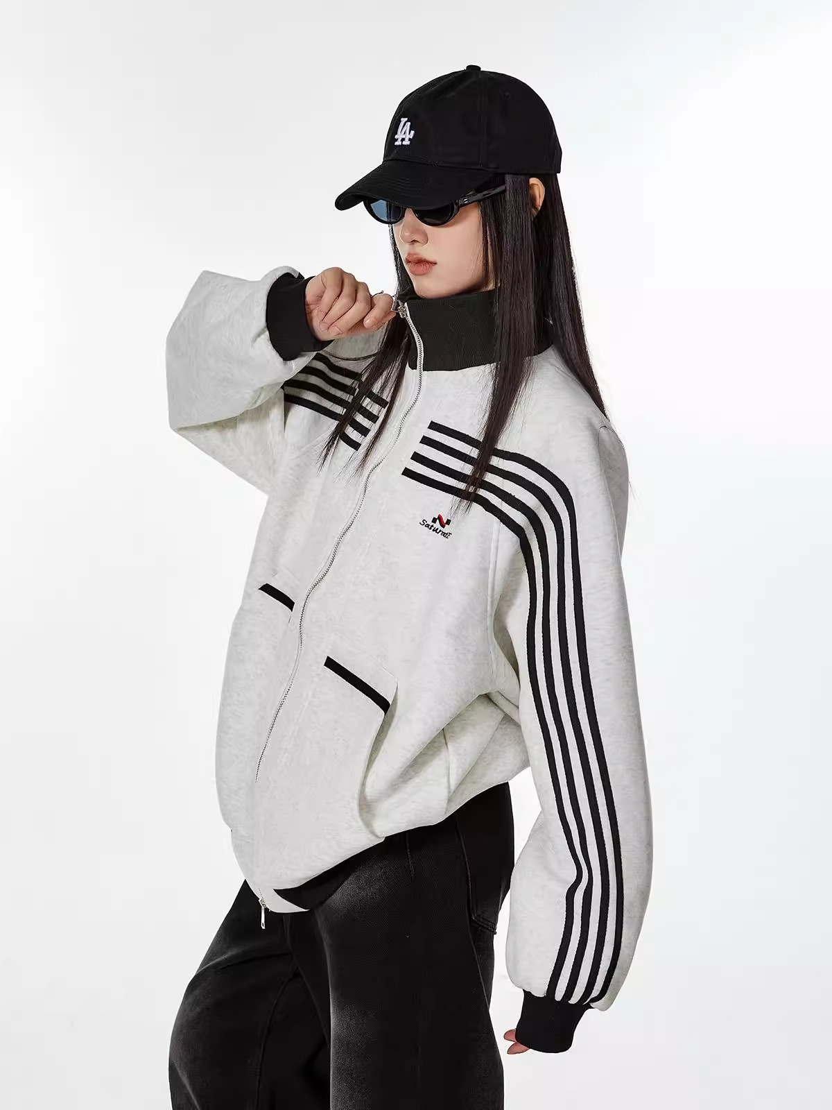 대외 무역 폭발 미국 스트라이프 스포츠 스웨터 재킷 남성 트렌디 브랜드 하이 스트리트 디자인 센스 캐주얼 칼라 지퍼 카디건스토어 가기