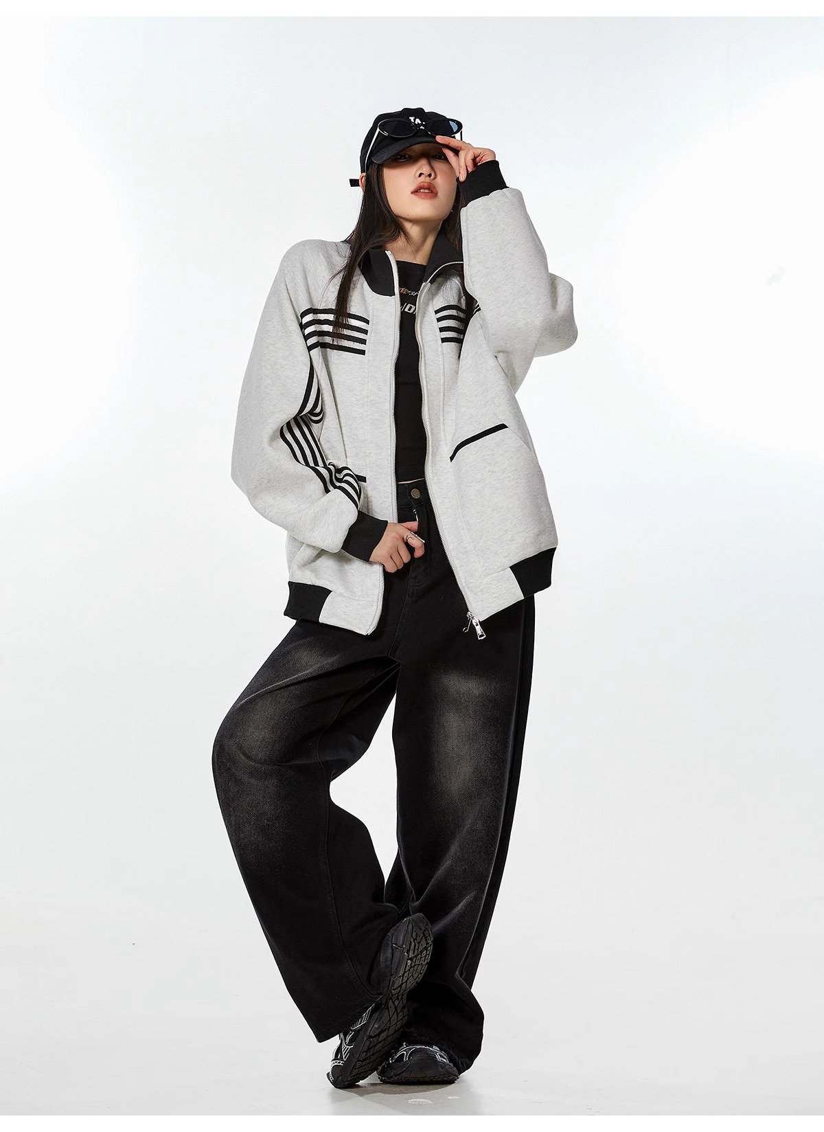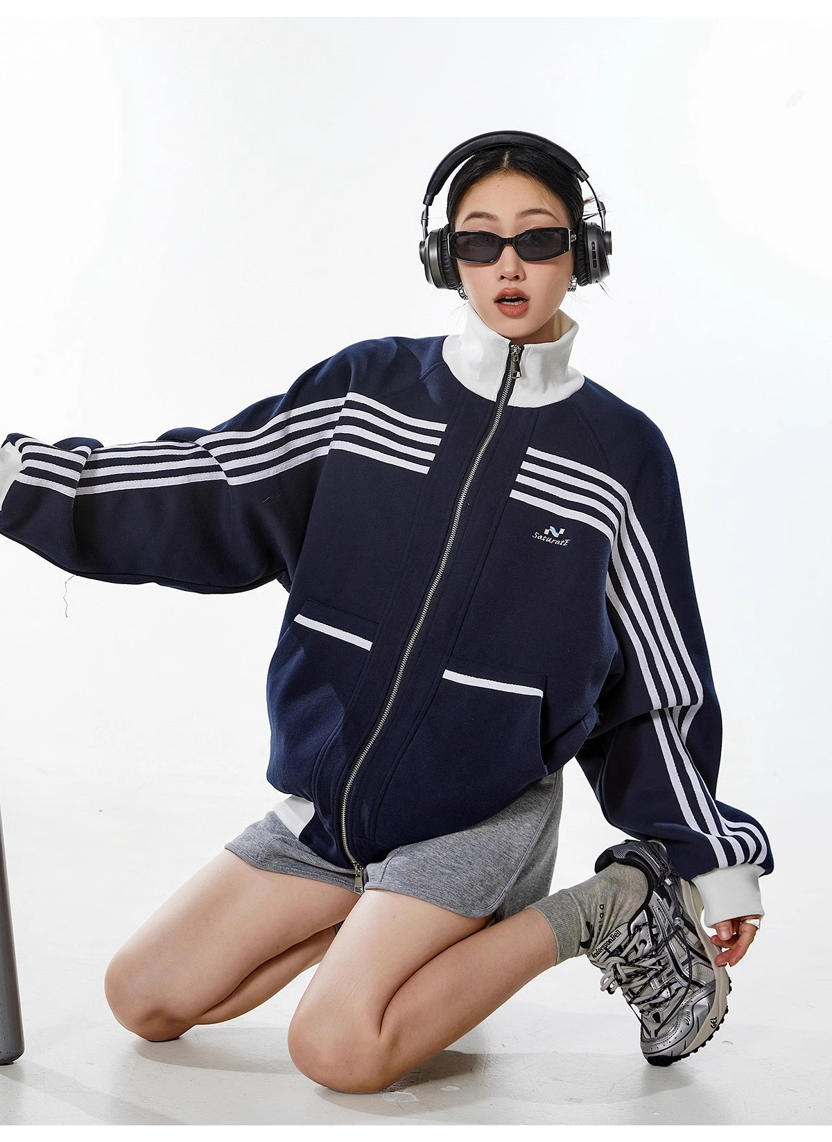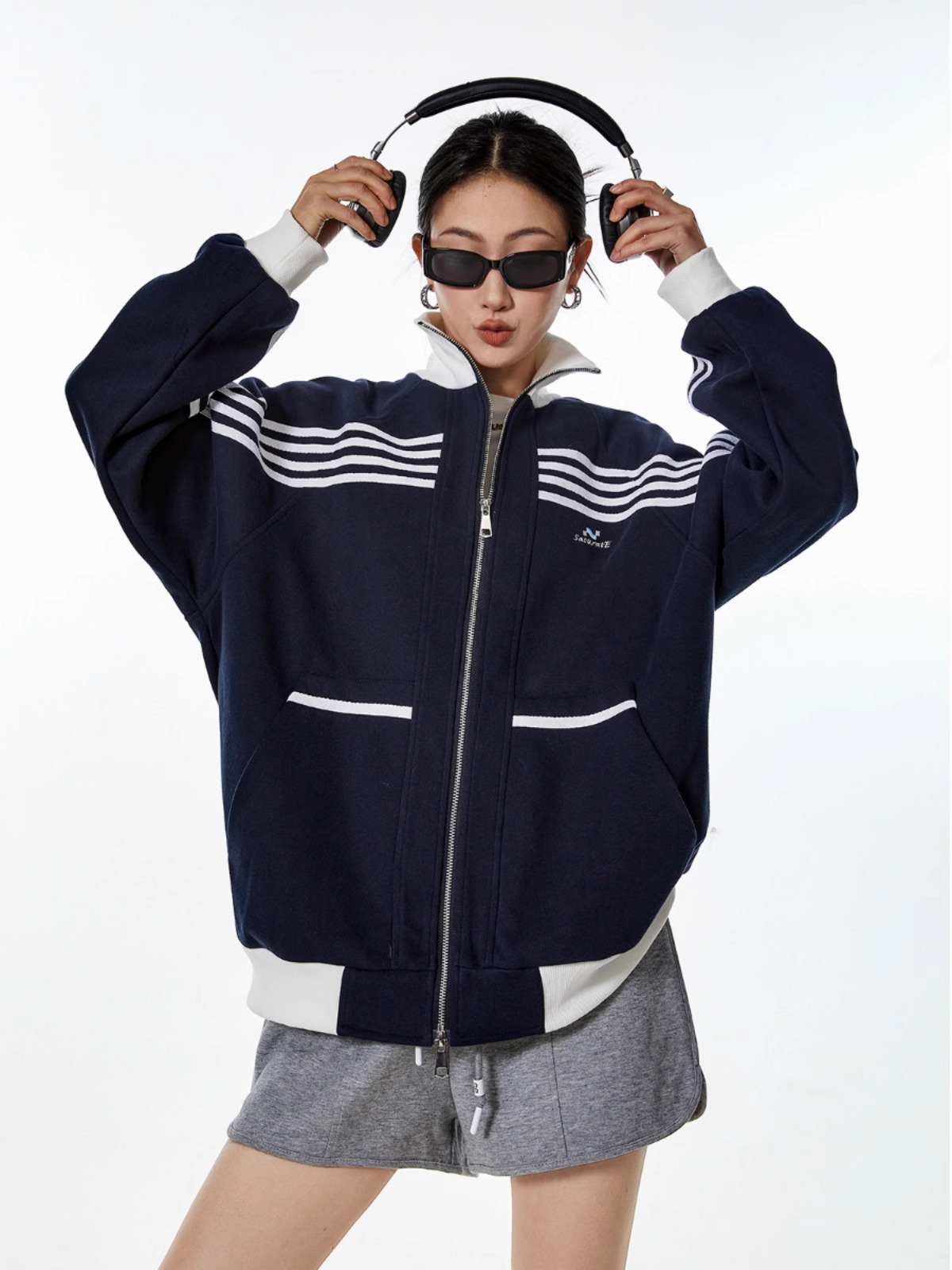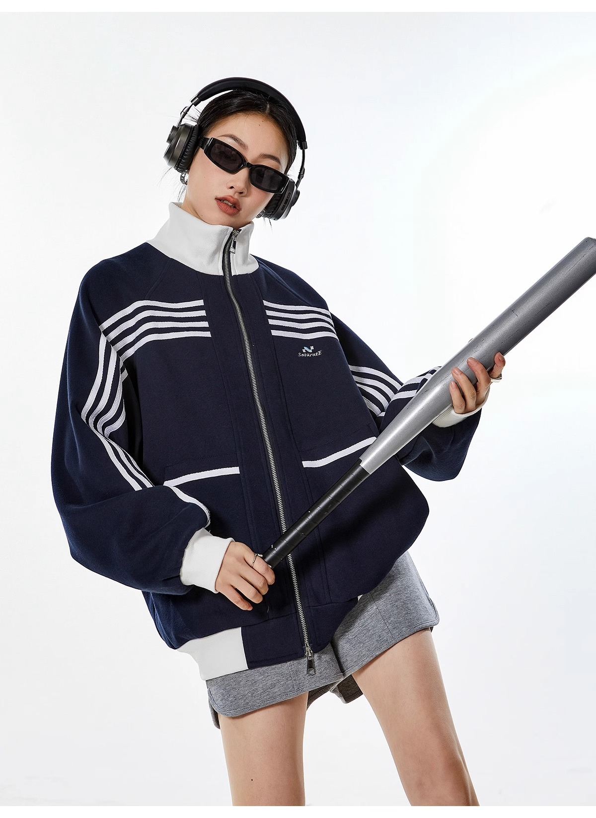 대외 무역 폭발 미국 스트라이프 스포츠 스웨터 재킷 남성 트렌디 브랜드 하이 스트리트 디자인 센스 캐주얼 칼라 지퍼 카디건스토어 가기