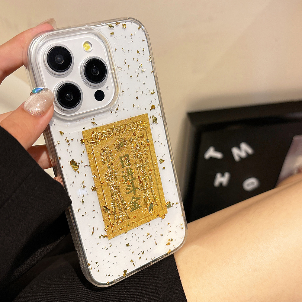 아이폰16프로맥스용 금박 드립젤 애플17 휴대폰 케이스, 행운과 부를 상징하는 낙하 방지 보호 케이스스토어 가기