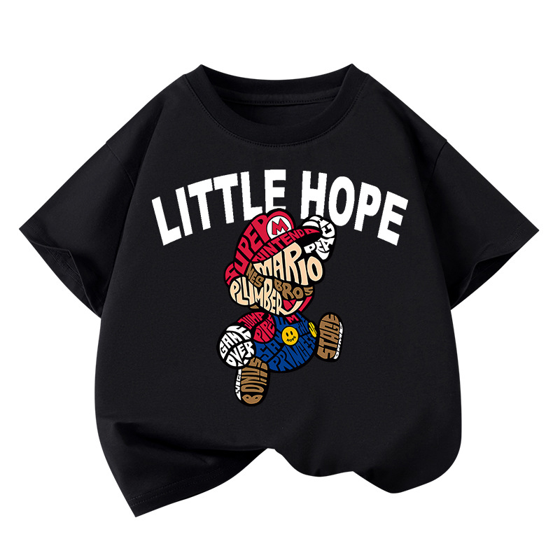 아동복 소년 반팔 티셔츠 2025 새로운 여름 스타일 아동용 순면 라운드 넥 탑 중형 및 대형 아동용 멋진 패션 의류스토어 가기