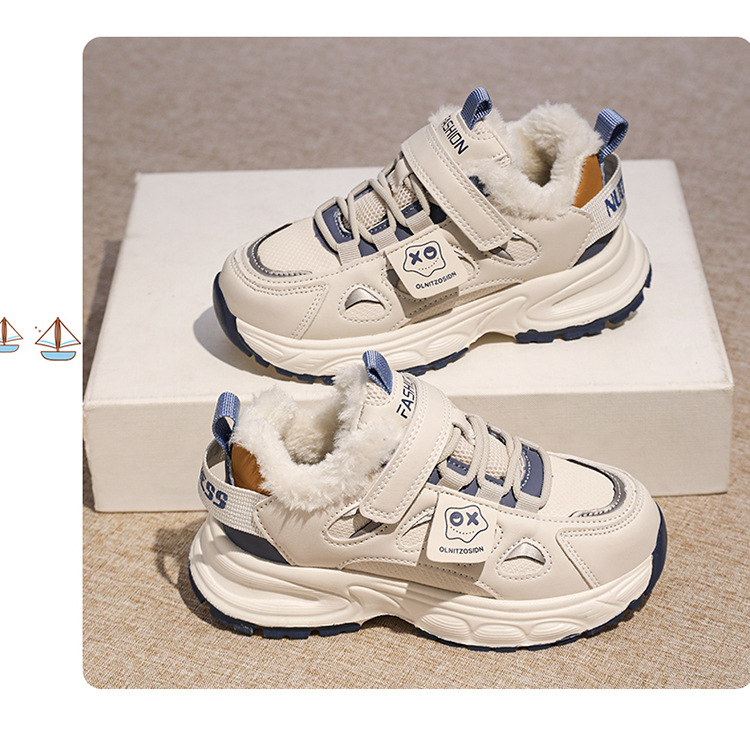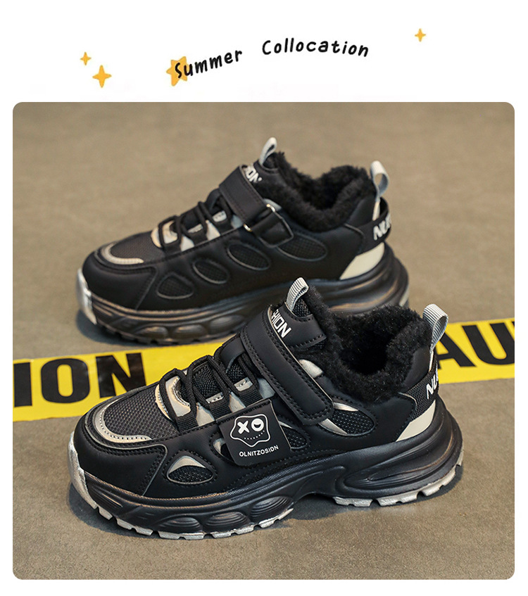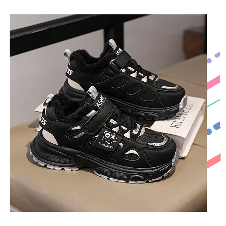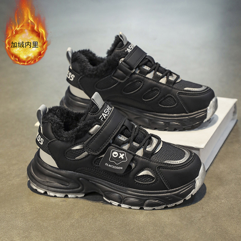 국경 간 소년 신발 2024 겨울 어린이 미끄럼 방지 소프트 단독 운동화 신발 기모 코튼 신발