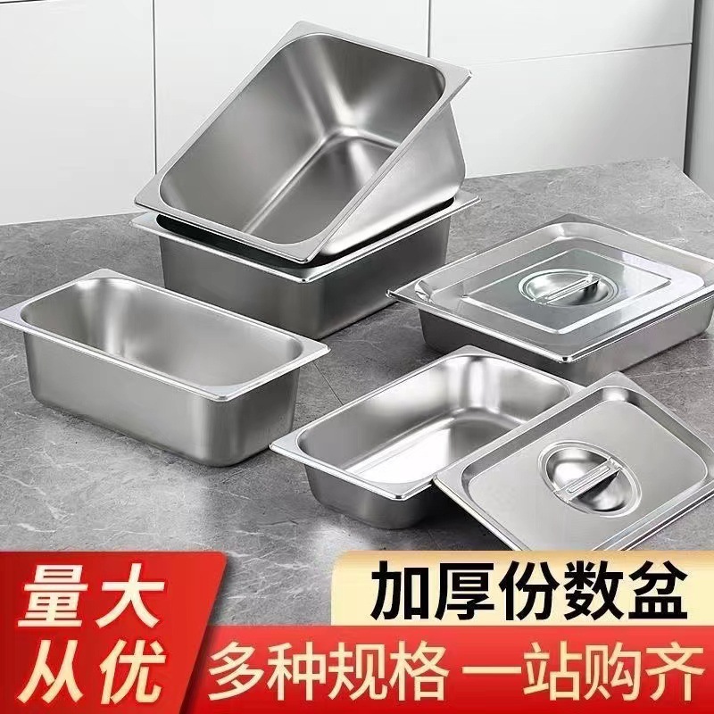 뚜껑이있는 스테인레스 스틸 부분 분지 뷔페 분지 직사각형 식품 패스트 푸드 트럭 야채 분지 광장 우유 차 가게 상업스토어 가기