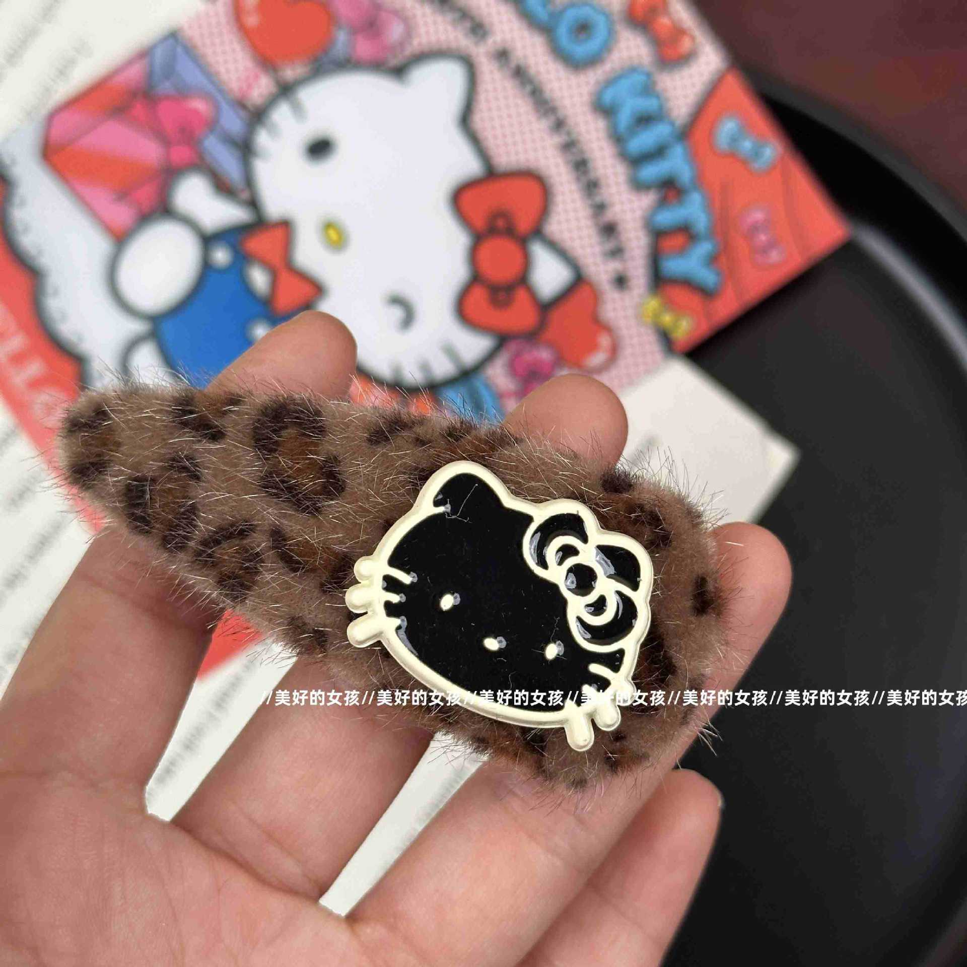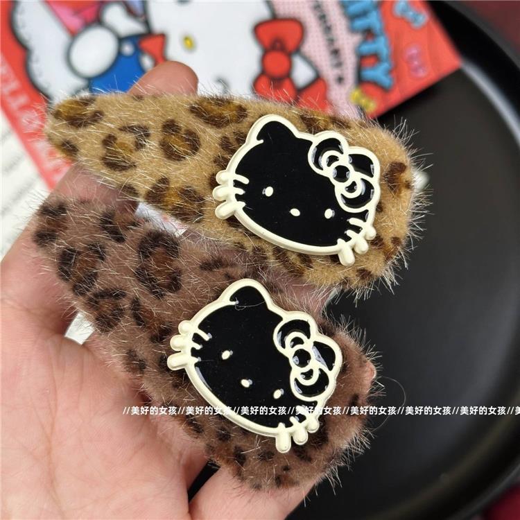 새로운 만화 Kt 고양이 표범 봉제 고양이 머리핀 가을과 겨울 달콤한 소녀 뱅 사이드 클립 헤어핀 헤어 액세서리