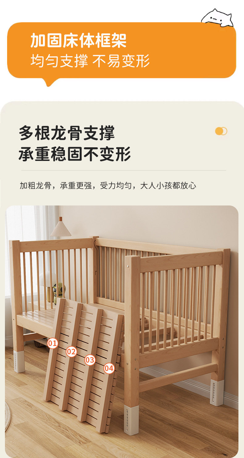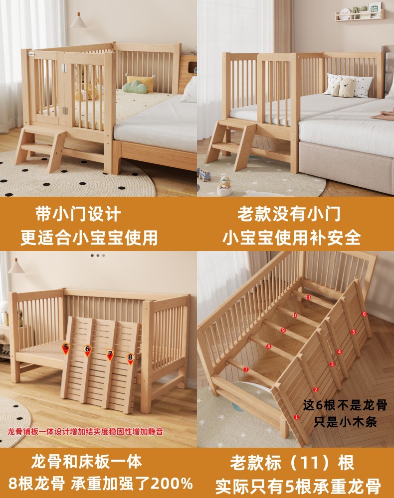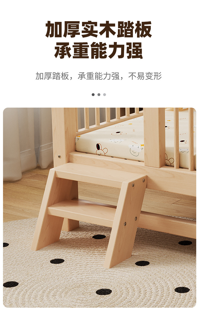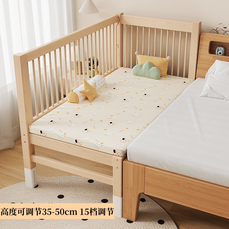 가드 레일이있는 도매 높이 조절 식 너도밤 나무 어린이 스티칭 침대 침대 스티칭 침대 옆 아기 침대 단단한 나무스토어 가기