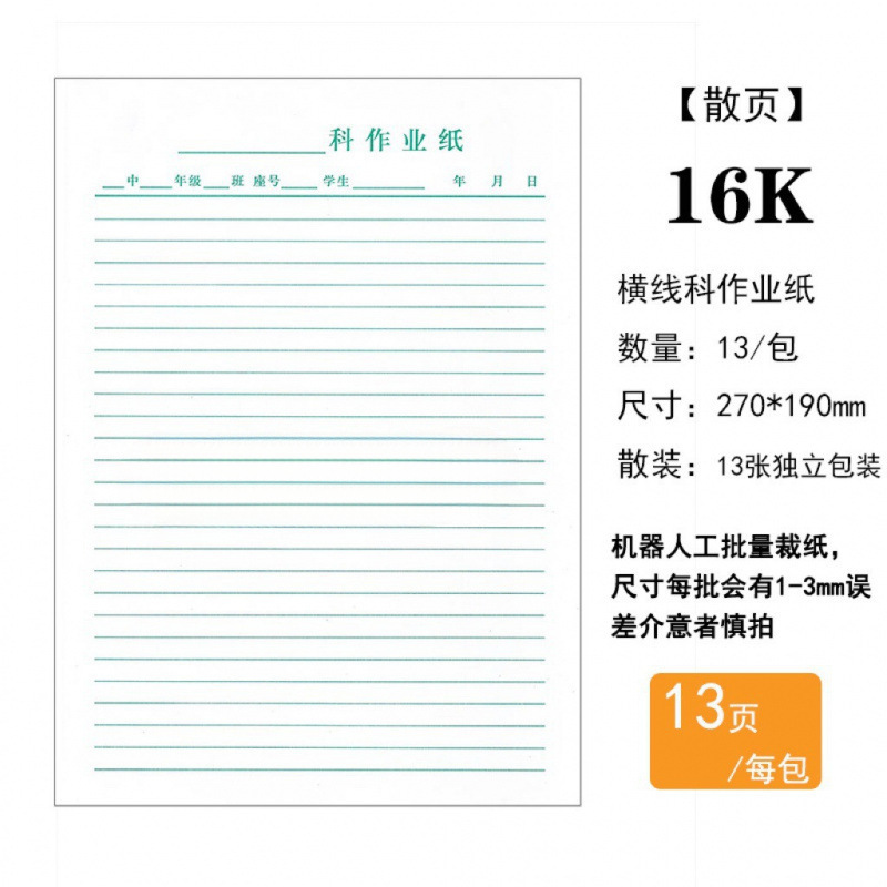 숙제 종이 학생 숙제 유물 수학 종이 초안 운동 종이 16K 솔리드 라인 빈 부문 숙제 종이