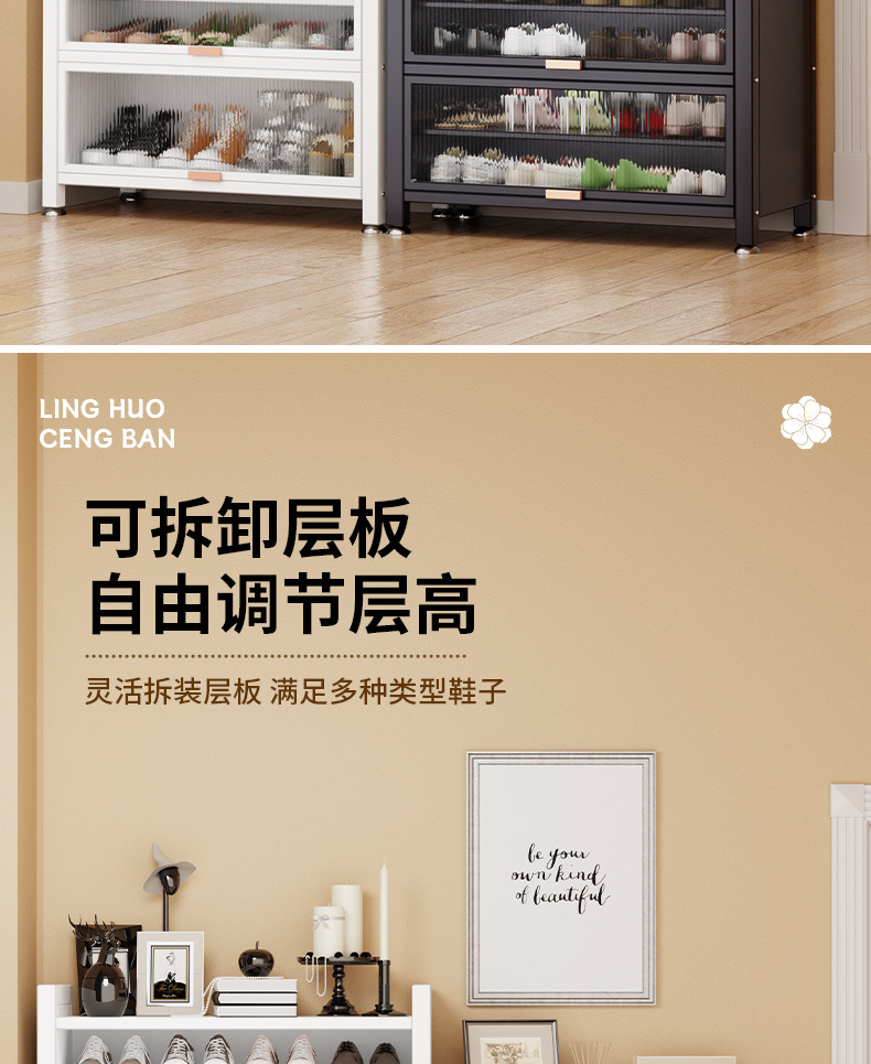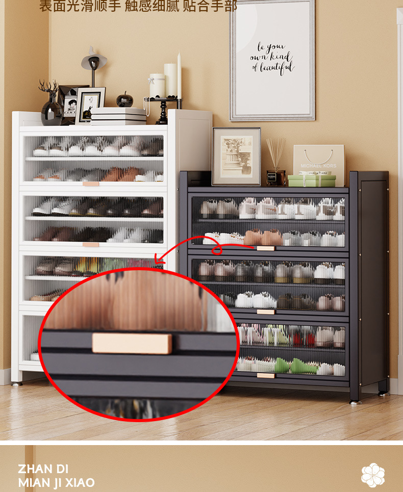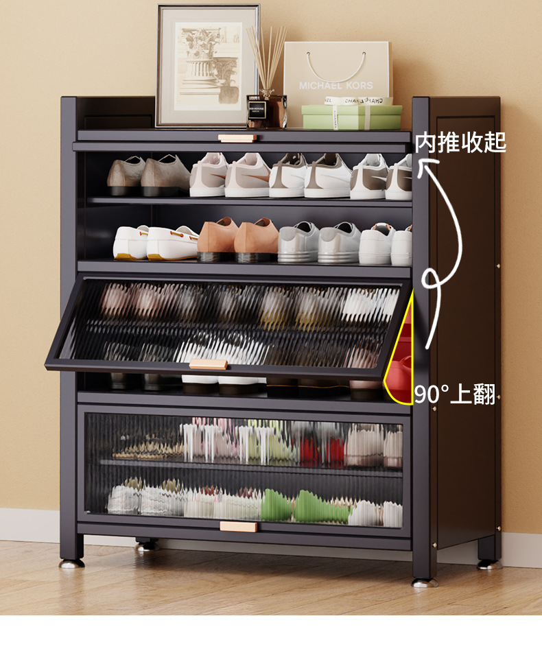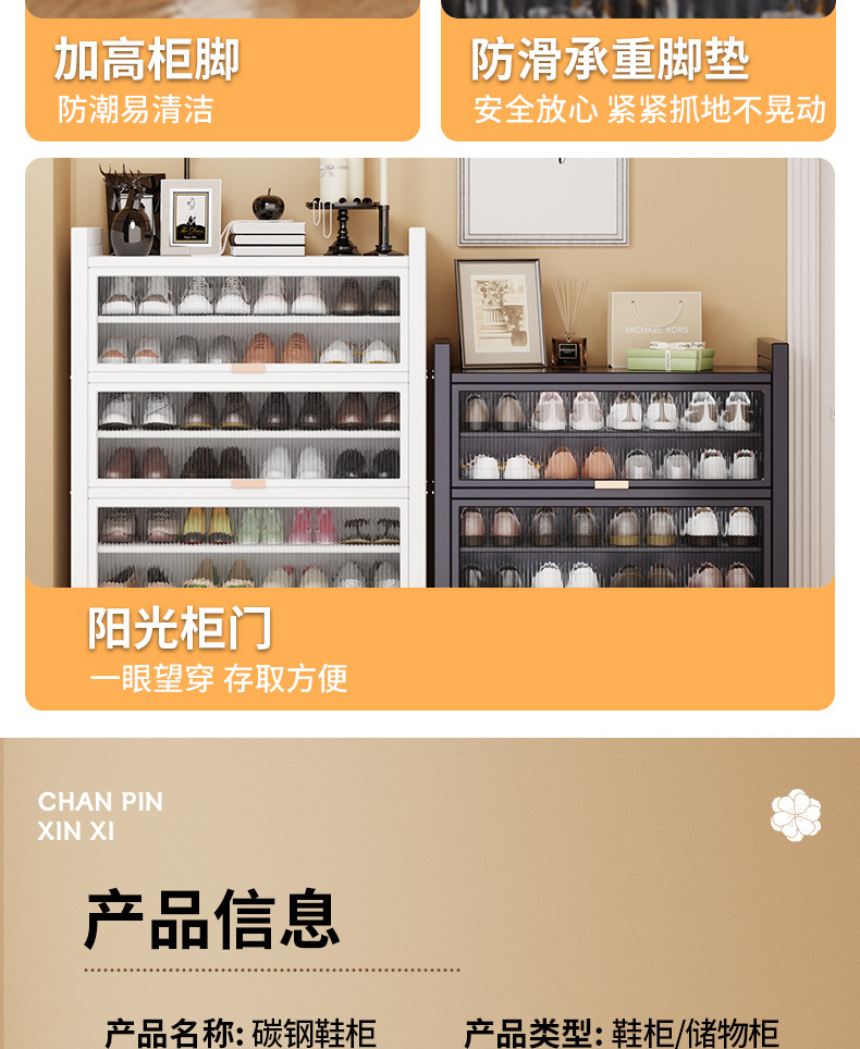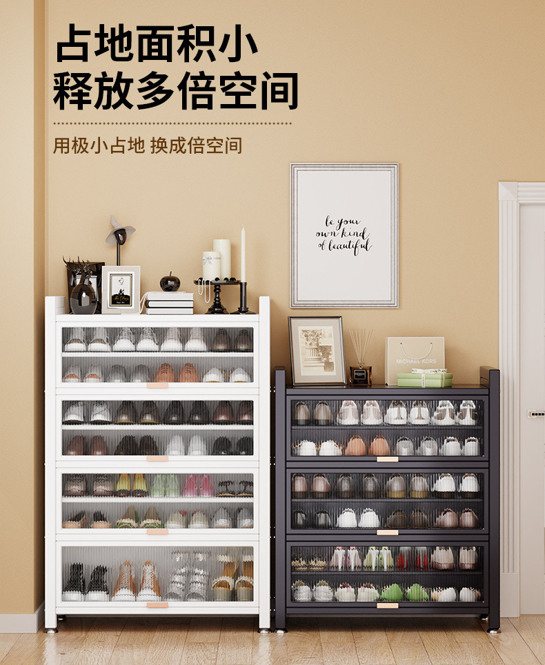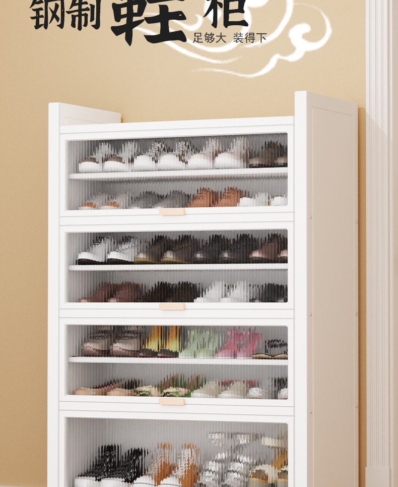 가정용 스틸 신발 캐비닛 도어 멀티 레이어 간단한 바닥 랙 통합 대용량 방진 신발 랙 플립 도어 스토리지 캐비닛