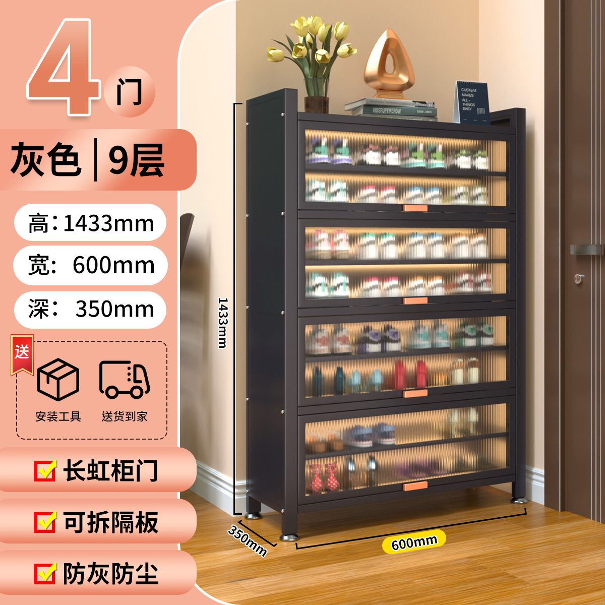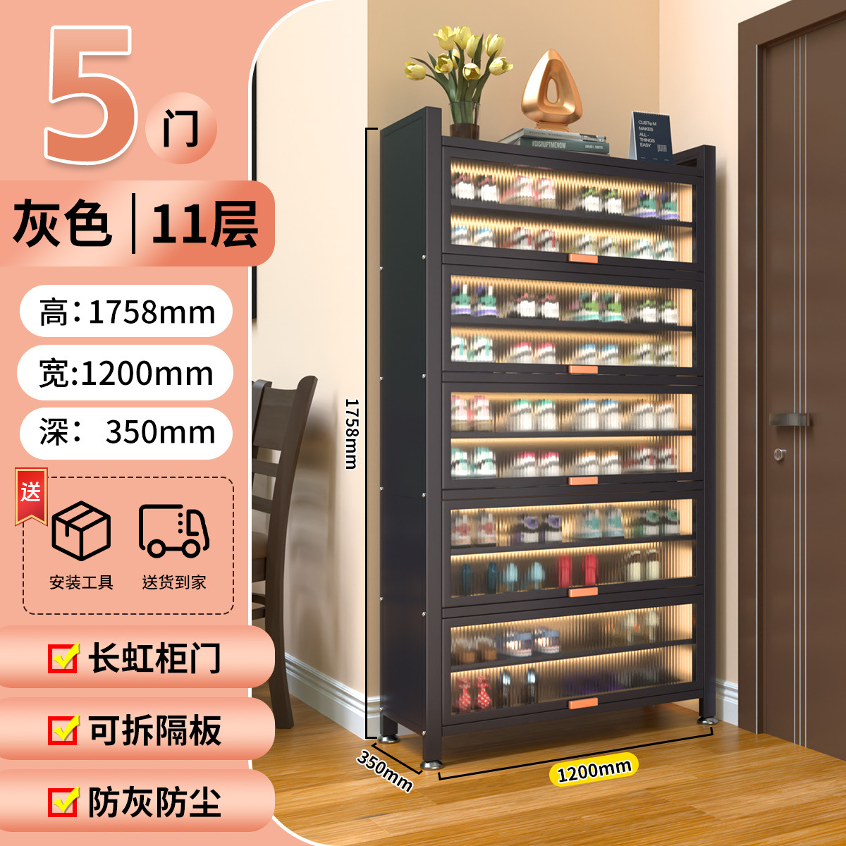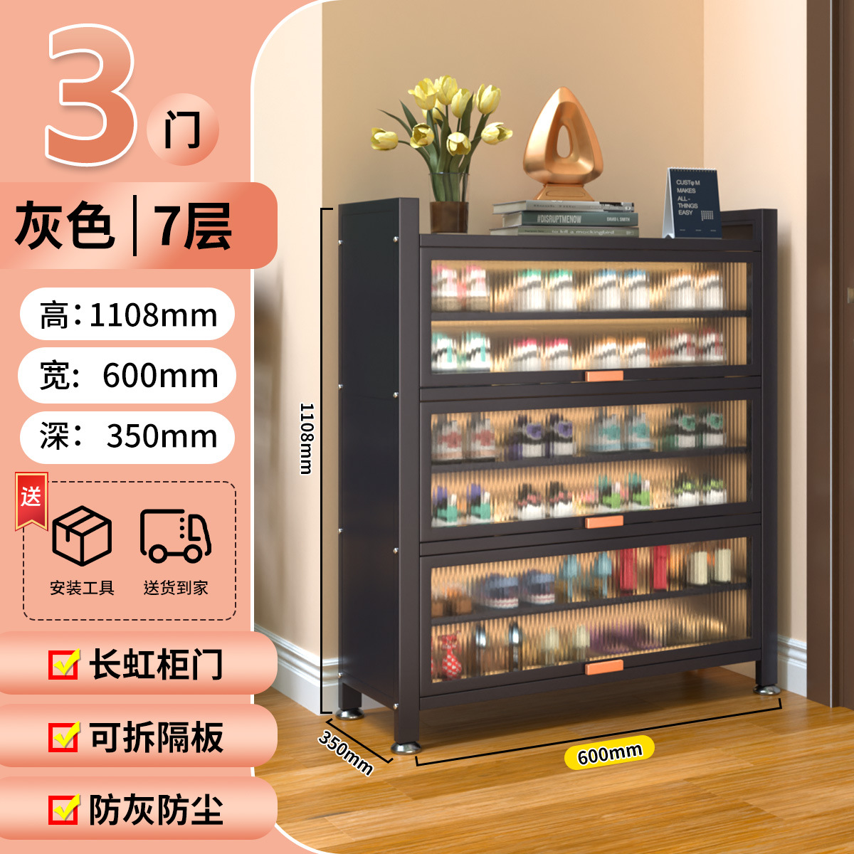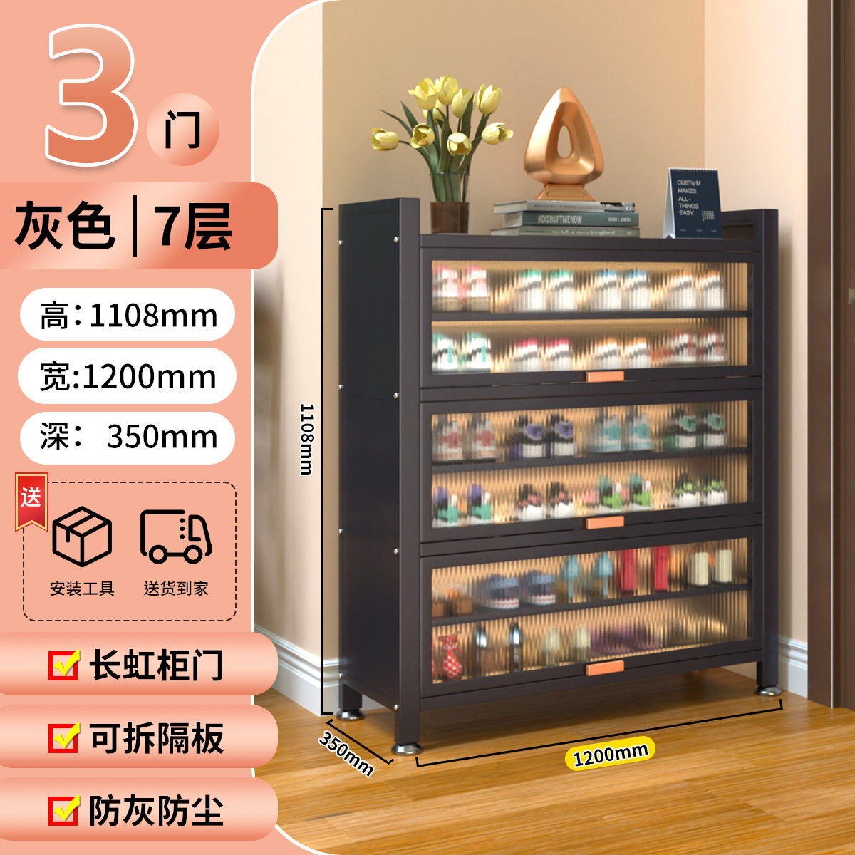가정용 스틸 신발 캐비닛 도어 멀티 레이어 간단한 바닥 랙 통합 대용량 방진 신발 랙 플립 도어 스토리지 캐비닛
