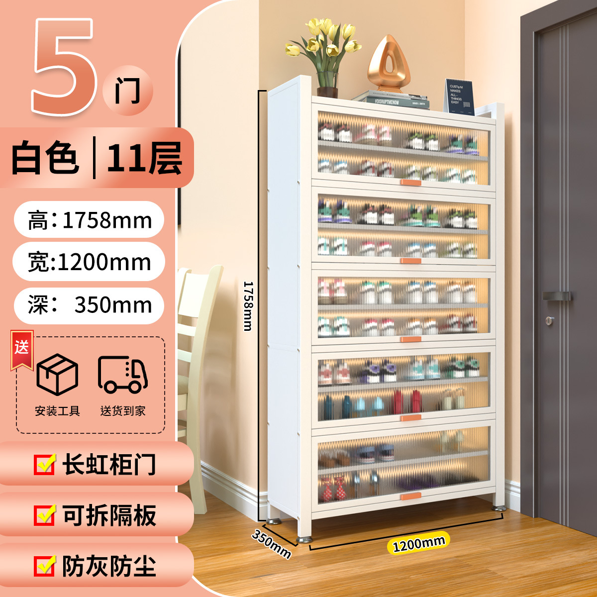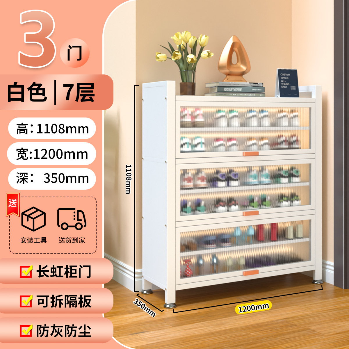 가정용 스틸 신발 캐비닛 도어 멀티 레이어 간단한 바닥 랙 통합 대용량 방진 신발 랙 플립 도어 스토리지 캐비닛스토어 가기