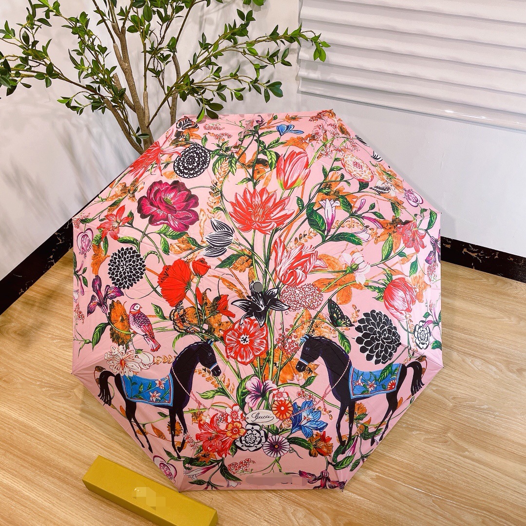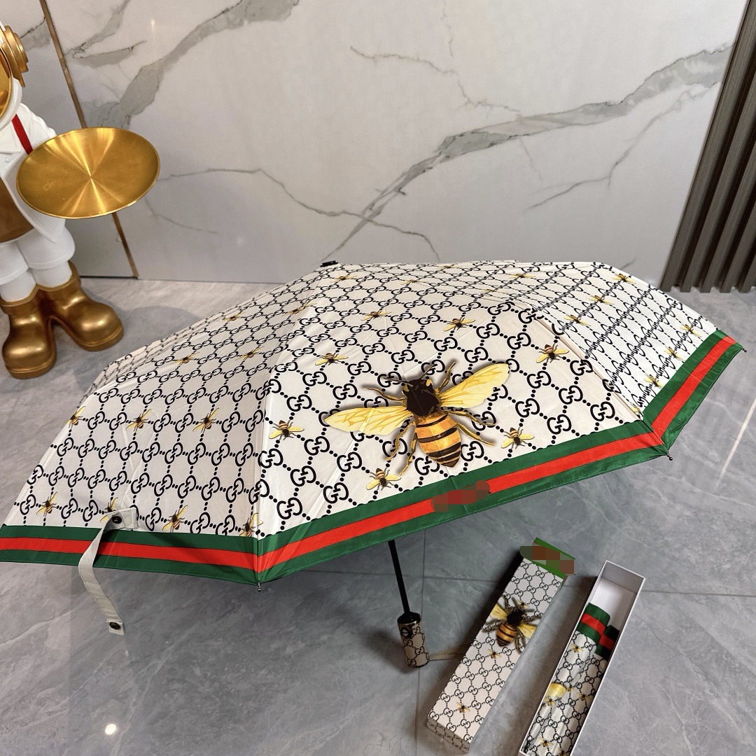 라이트 럭셔리 G 홈 자동 원 버튼 접히는 맑고 비오는 우산 클래식 꿀벌 패턴 블랙 접착제 그늘 온라인 연예인 우산스토어 가기