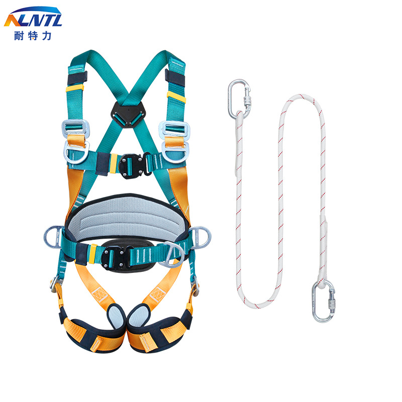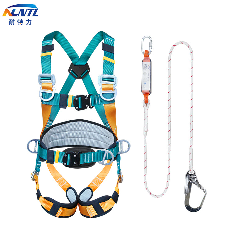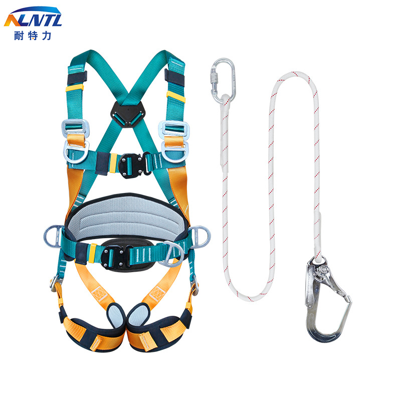새로운 국가 표준 5 점 전신 안전 벨트 공중 작업 암벽 등반 전기 구조 떨어지는 안전 로프 세트