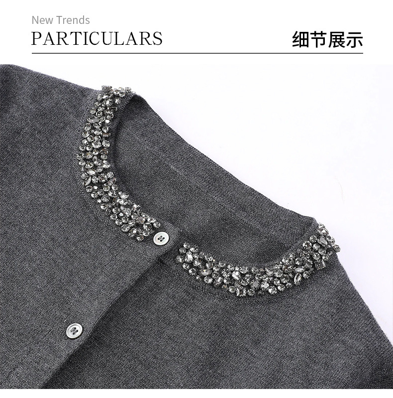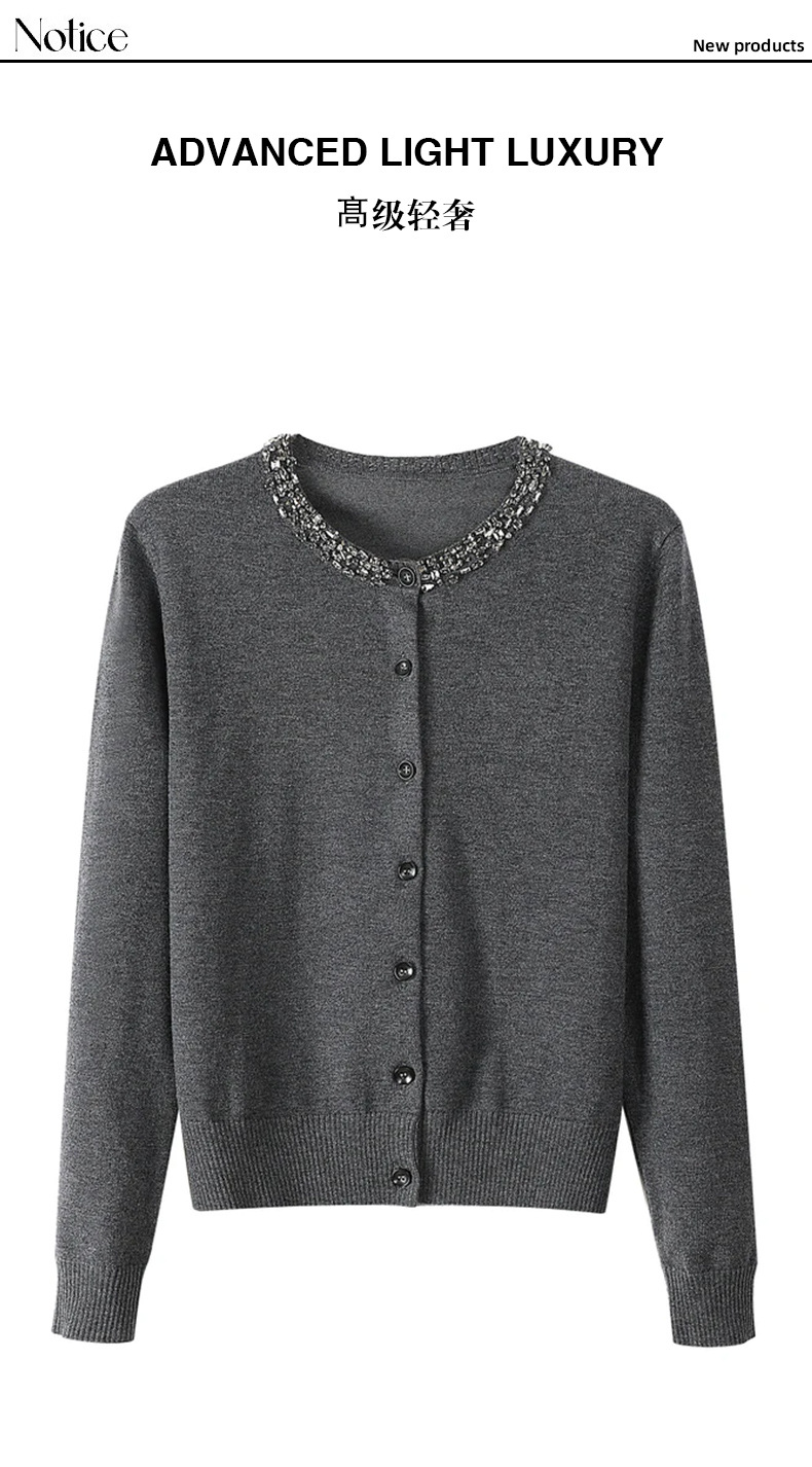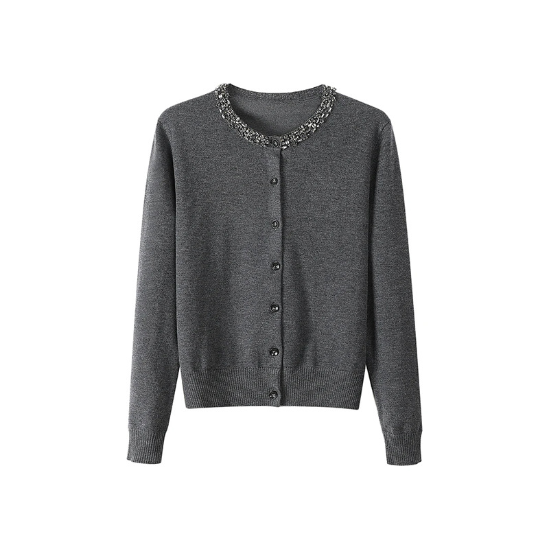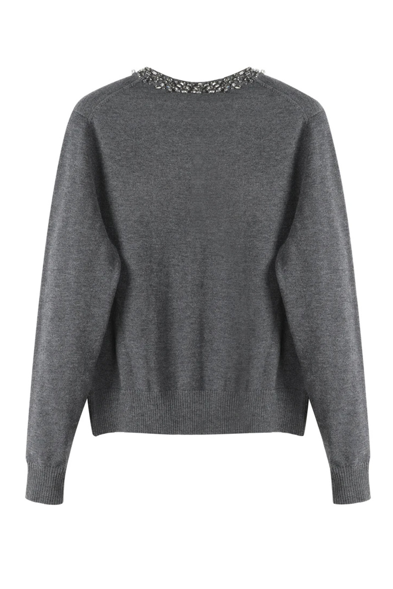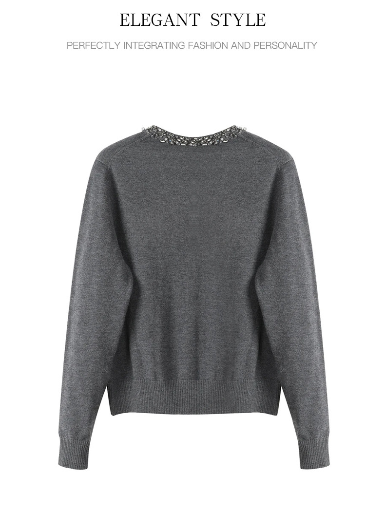 회색 구슬 다크 그레이 양모 니트웨어 여성용 가을과 겨울 새로운 2024 라운드 넥 긴 소매 고급 우아한 탑스토어 가기