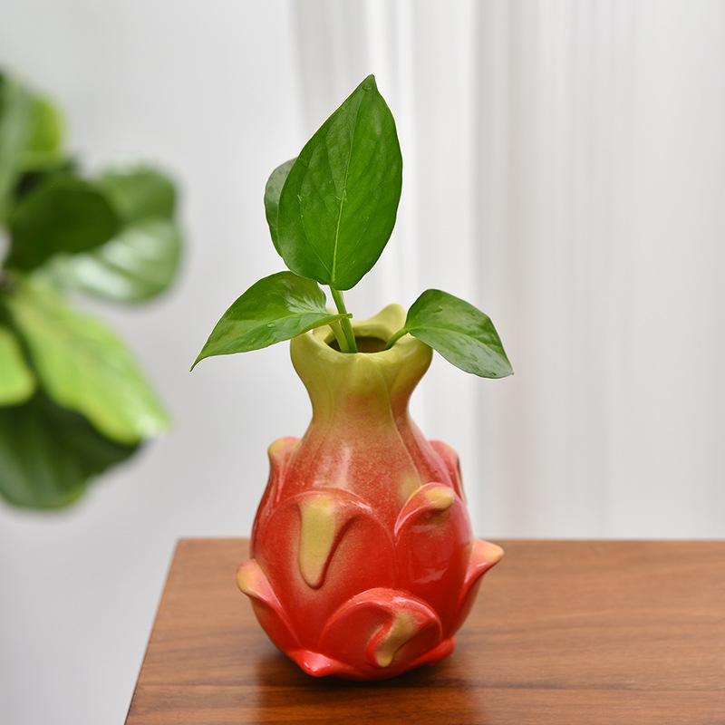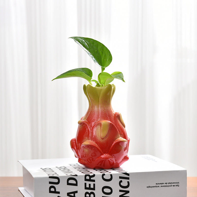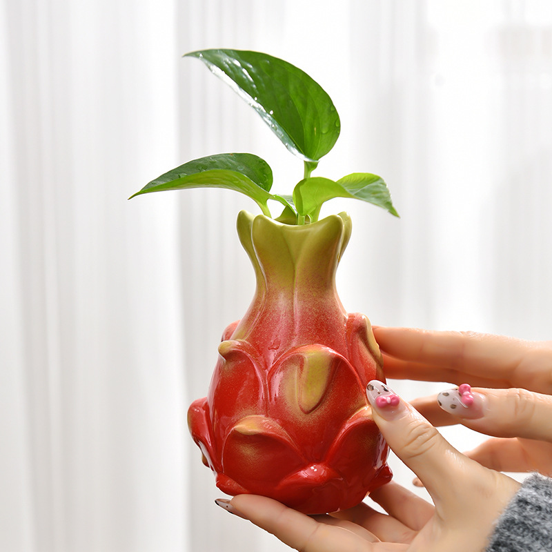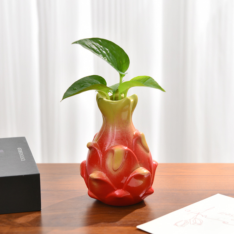 창조적 인 Pitaya 꽃병 세라믹 물 올리는 녹색 꽃 꽃병 거실 데스크탑 데스크 장식 장식품 수경 꽃 냄비