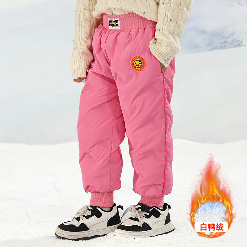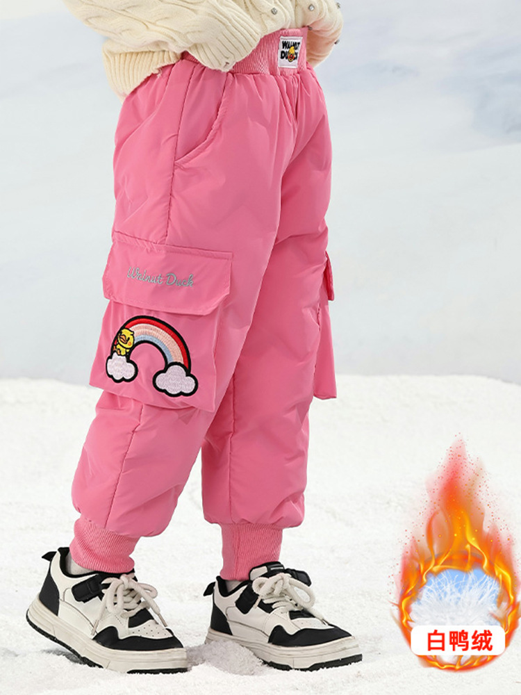 작은 노란 오리 아동복 남아용 다운 팬츠 2025년 신상 겨울옷 여아용 두꺼운 겨울 작업복 면바지스토어 가기