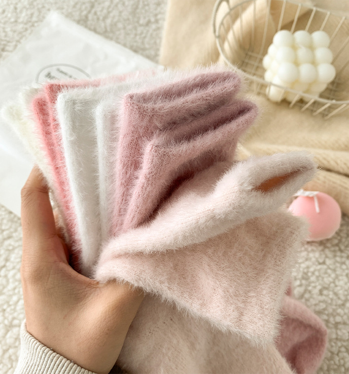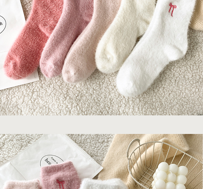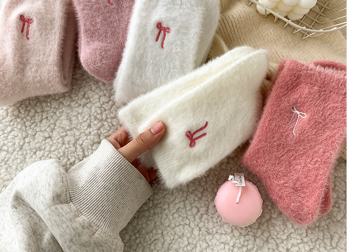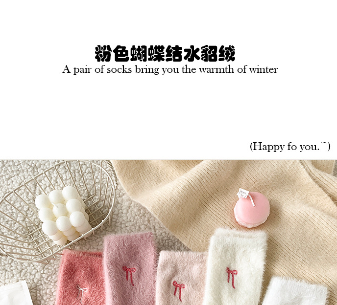 가을 겨울 핑크 나비 자수 여성 양말 플러스 벨벳 두꺼운 따뜻한 양말 홈 플로어 종아리 양말 수면 양말스토어 가기